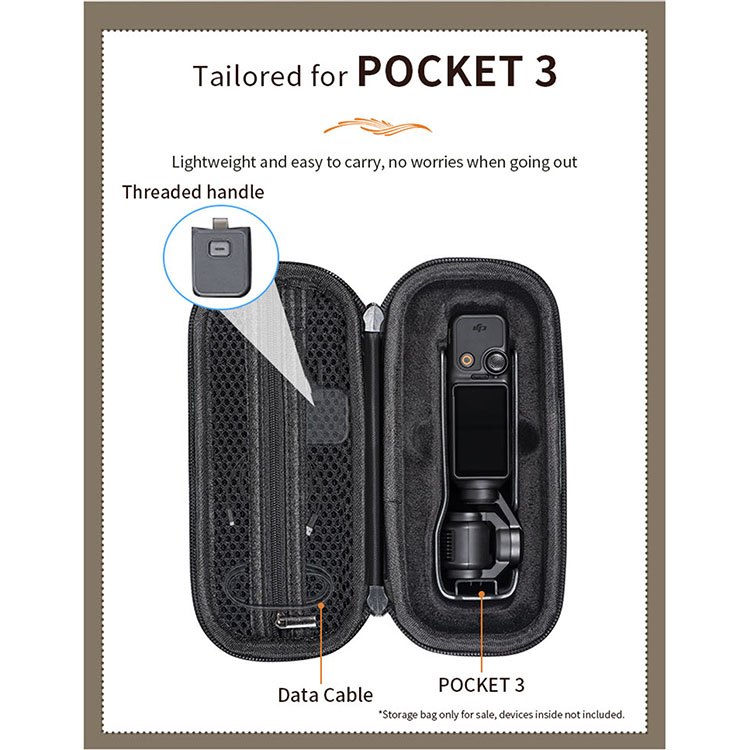 Specially designed for DJI Pocket 3 camera, precise molding (compatible with Pocket 2), can perfectly match to store Pocket 3 camera (with protective case), mesh pocket design can store data cable, windproof fur cover, SD card and other small accessories