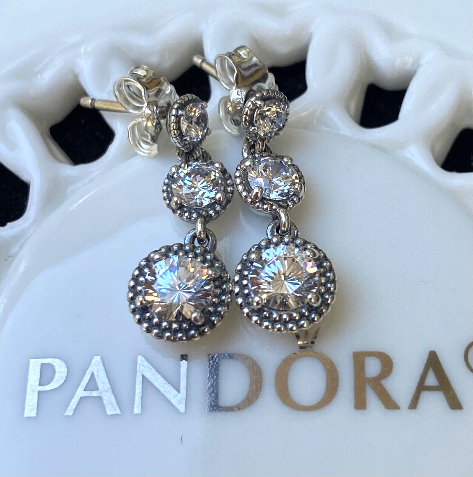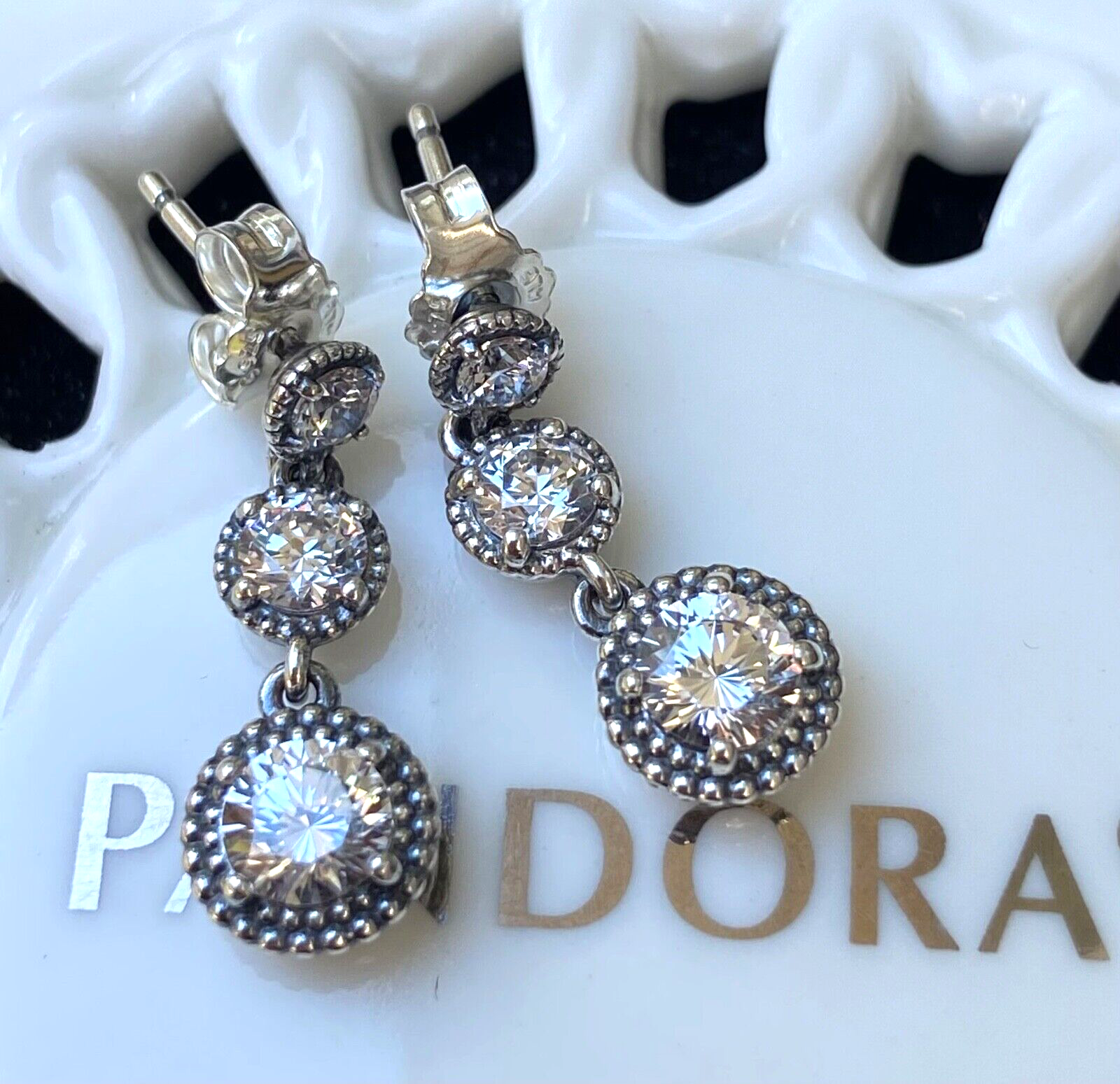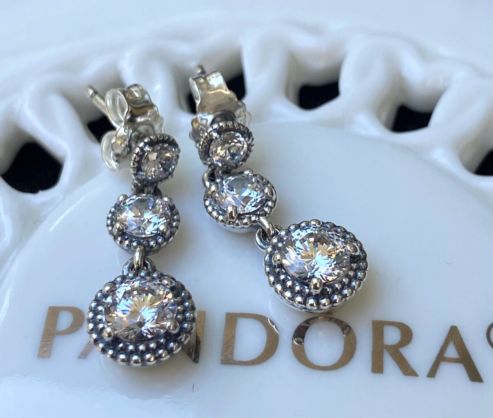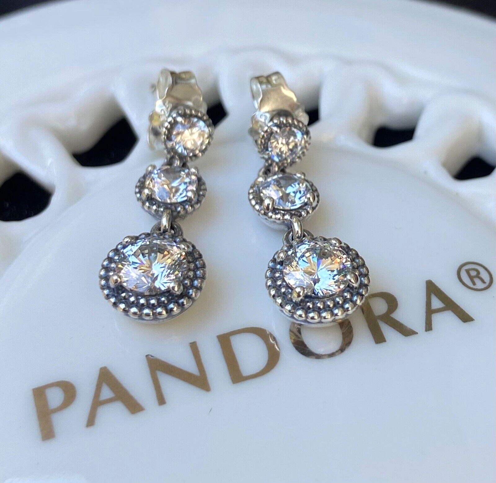 Authentic Pandora Eternal Elegance Dangle Earrings #290742CZ