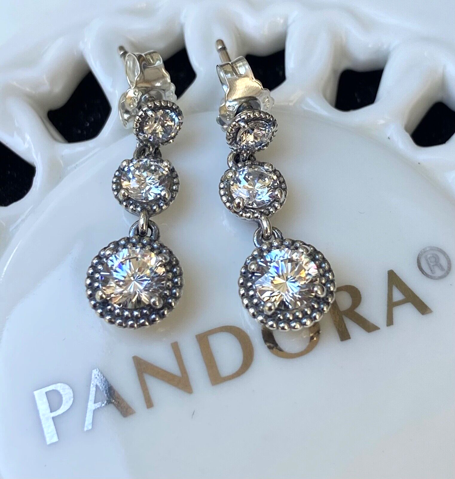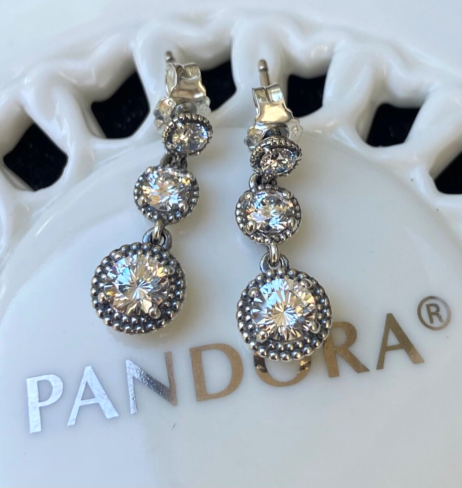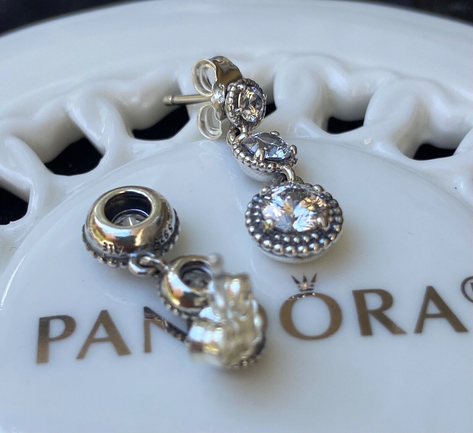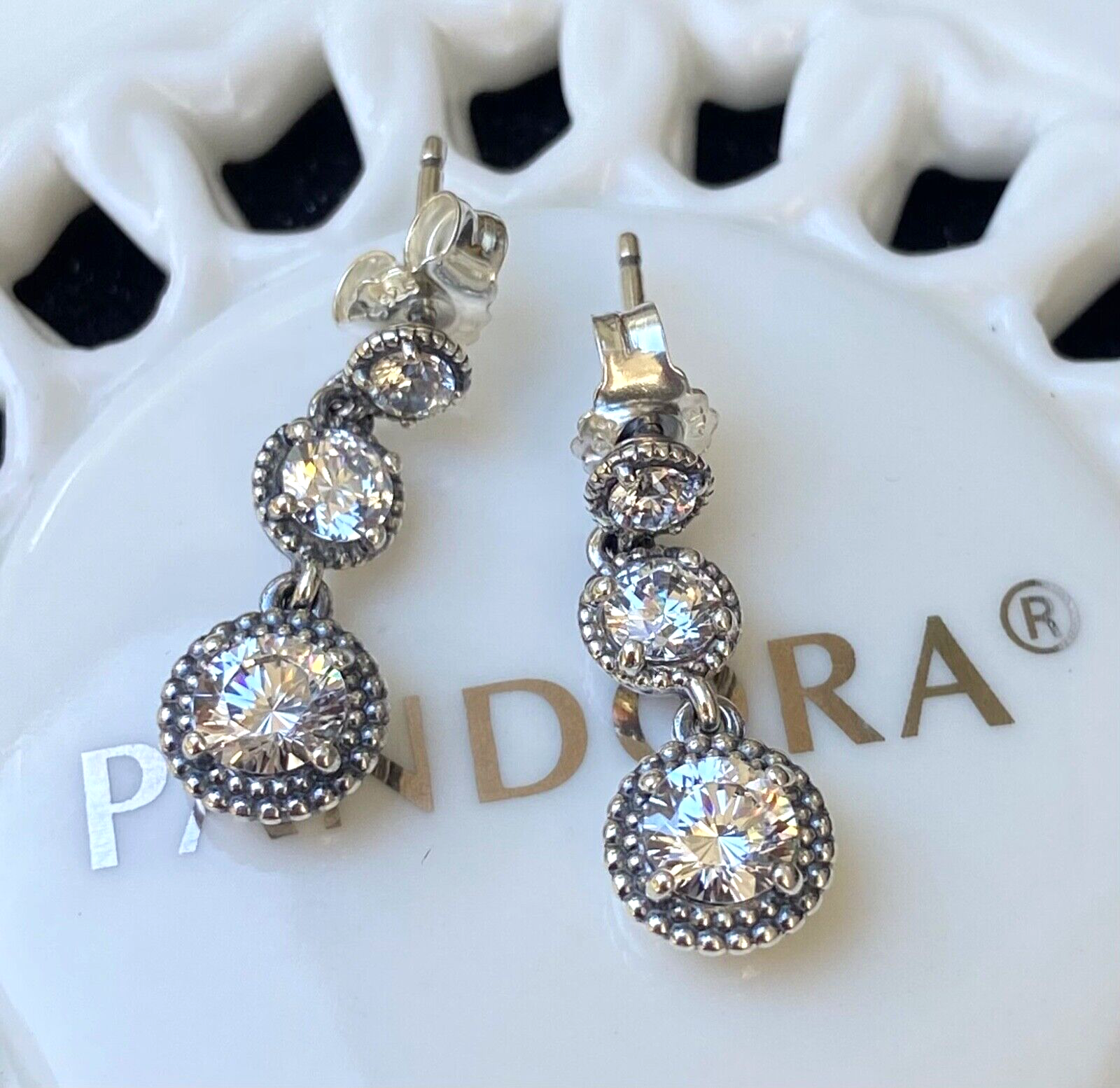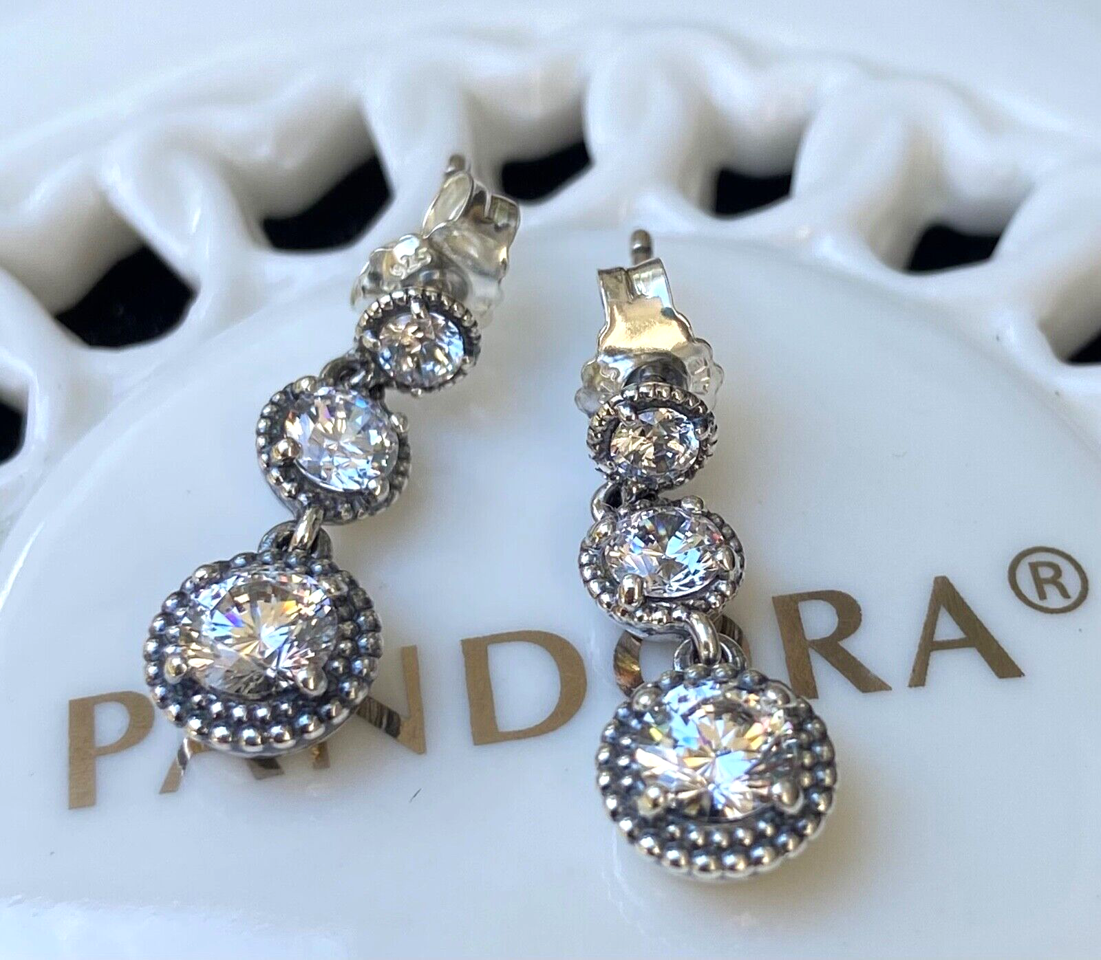 Authentic Pandora Eternal Elegance Dangle Earrings #290742CZ