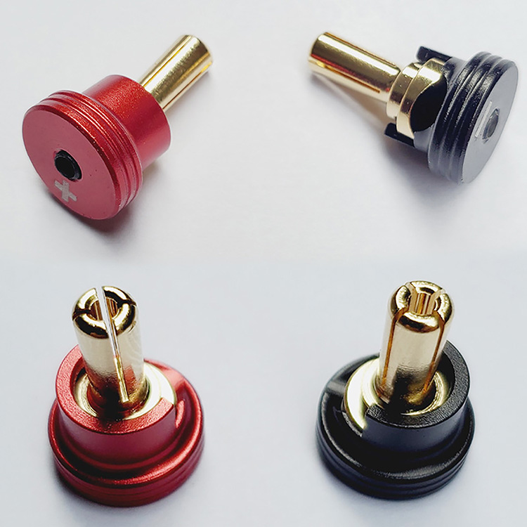 l 1x Red Aluminium Positive Heat Sink Connector, 1x Black Aluminium Negative Heat Sink Connector, 1x Plug, 2x Screw