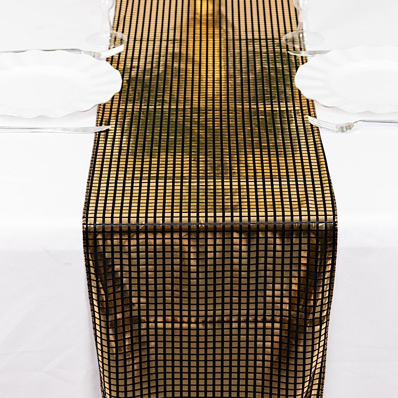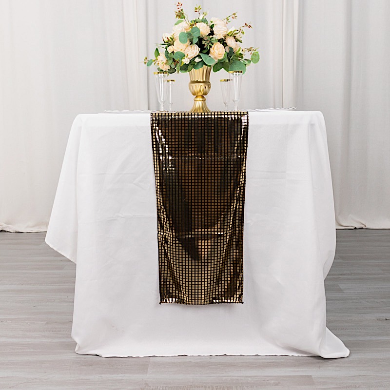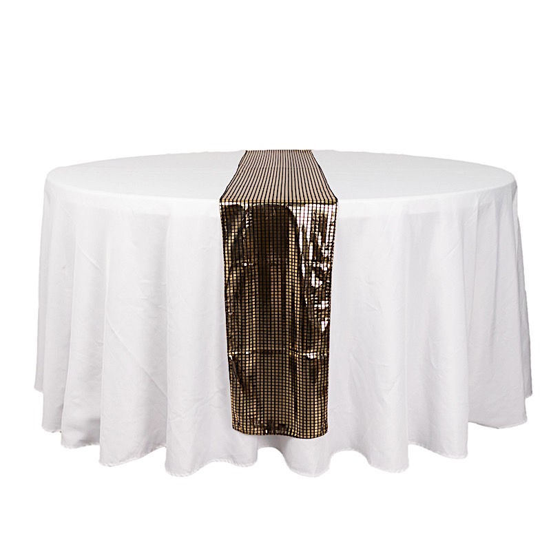 12x108 in Black Polyester TABLE RUNNER Gold Mirror Foil