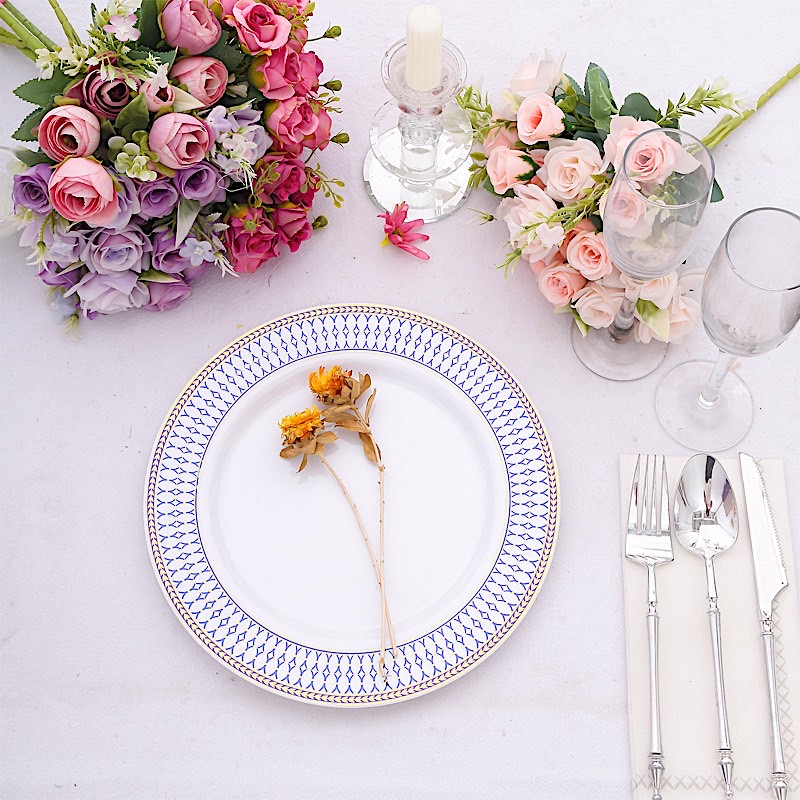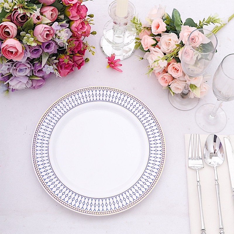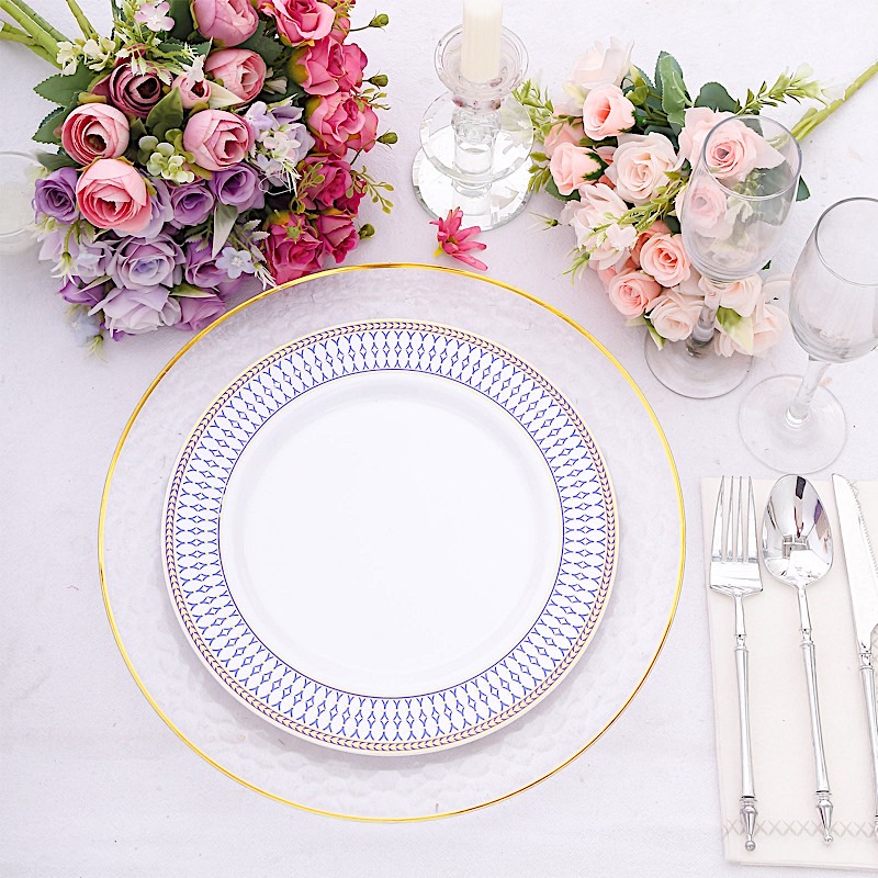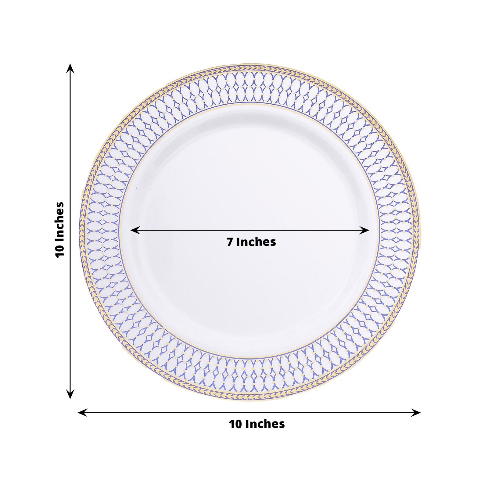 Entertainment just got easier. Serve your guests using these practical yet stylish plates and let your great food speak for itself! High quality plastic plates with Renaissance-style edges will make any dinner or lunch look extraordinary. Perfect choice for fine dining occasions where fast cleanup is a must! Use these round plastic plates for weddings, bridal showers, baby showers, birthday parties or any special events.
