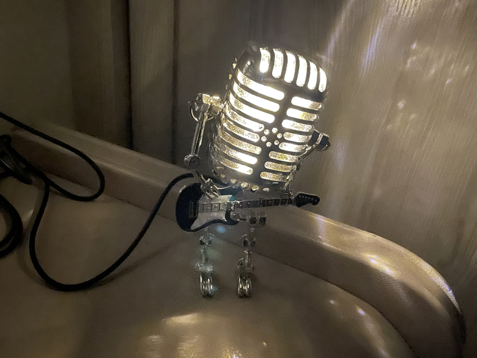 --The microphone robot is not only an ornament for indoor lighting, but also an ornament for viewing. The power cord is black.