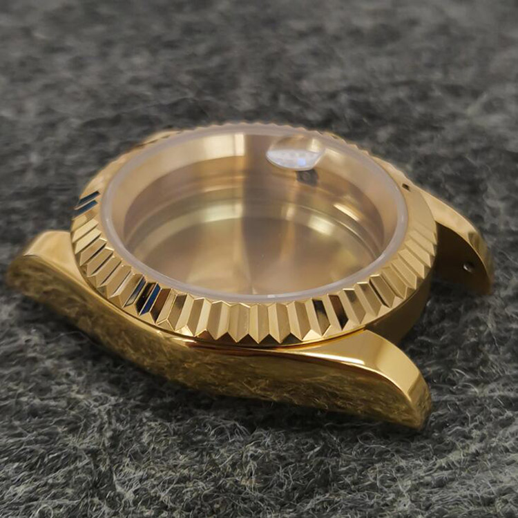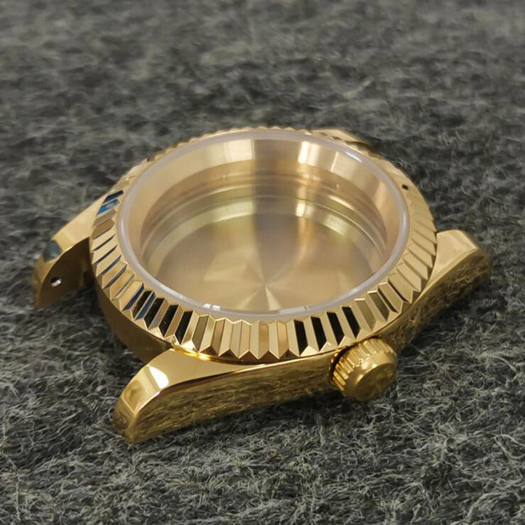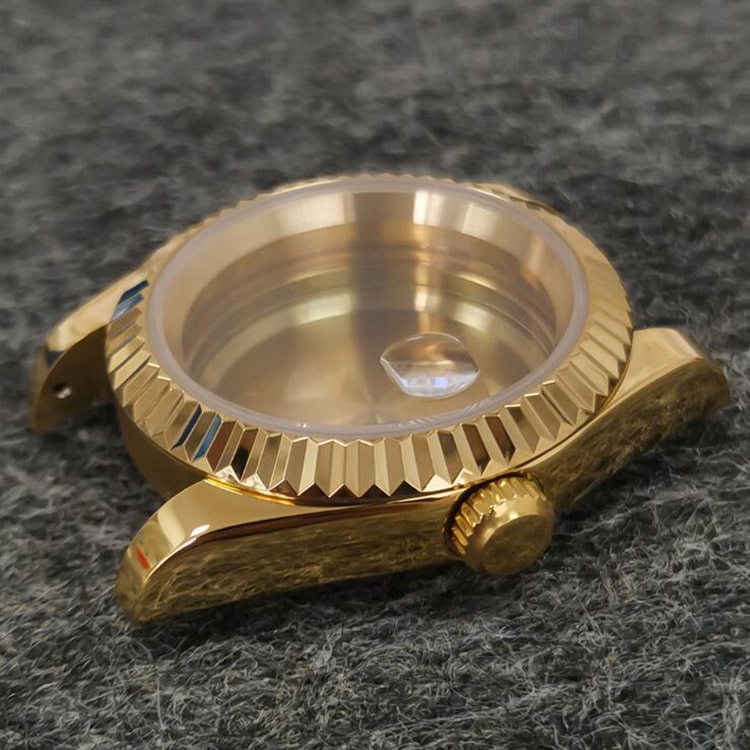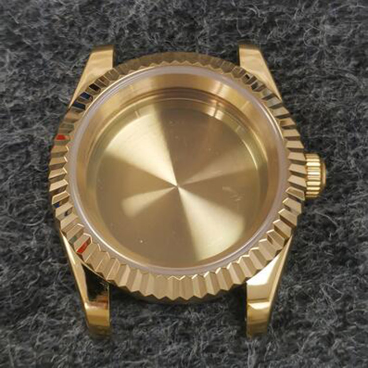 PVD Golden Tooth Ring / Oyster Stainless Steel Watch Case 39mm Dense Bottom + Sapphire Glass for NH35/36 Movement