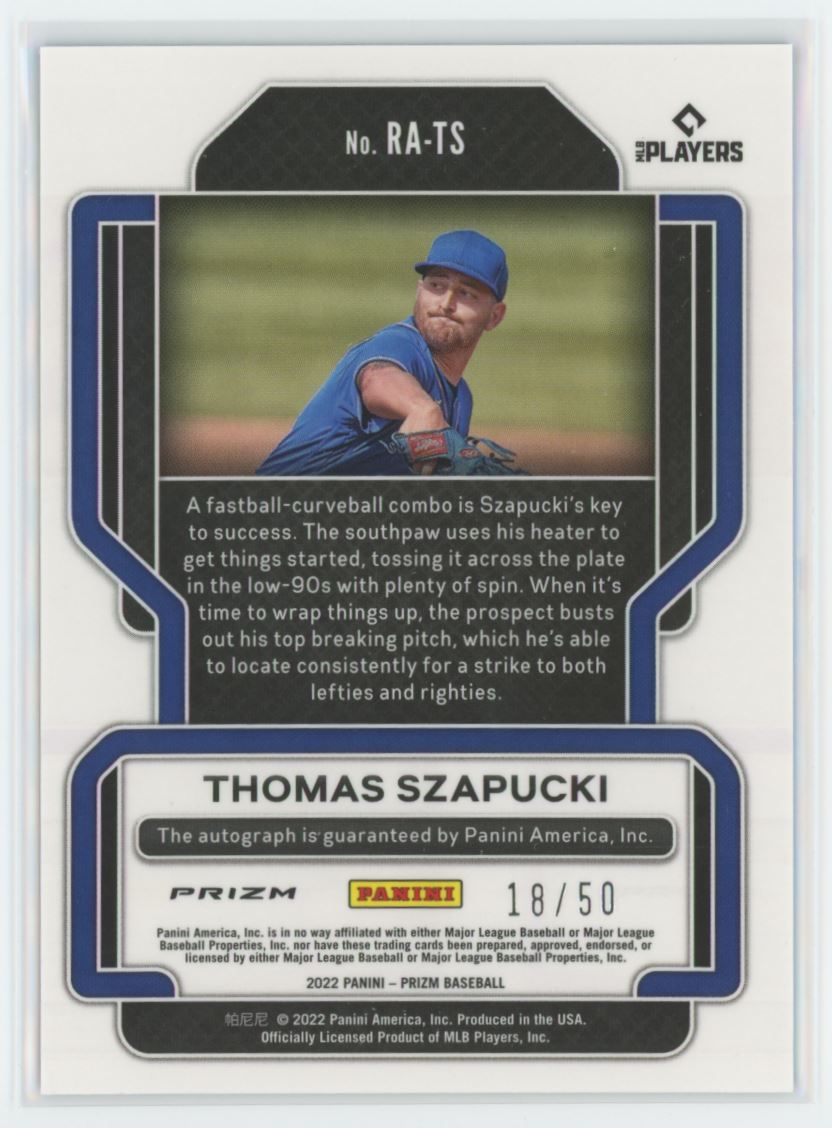 | 2022 Panini Prizm Autographs Blue Donught Thomas Szapucki 18/50 New York Mets |