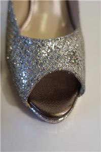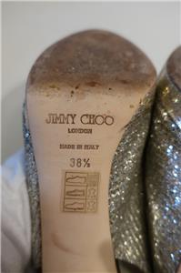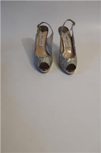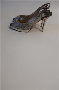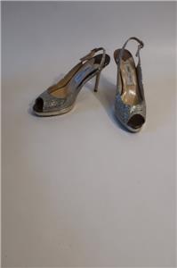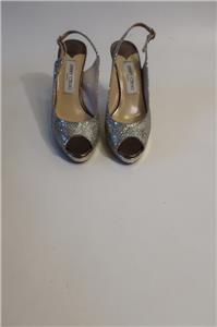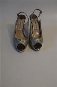 - Womens Jimmy Choo Nova Champagne Glitter Peep Toe Slingback Heels 38.5 US/8.5 *