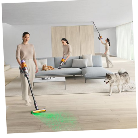Up to 60 minutes of run time (Actual run time will vary based on power mode, dust level and/or attachments used)•30% more suction than a Dyson V8 vacuum•Advanced, whole-machine filtration traps 99.99% of fine dust as small as 0.3 microns (In Boost mode. All other modes achieve at least 99.97% filtration)•Laser Slim Fluffy reveals hidden dust on hard floors•Motorbar cleaner head deep cleans carpets, with hair removal vanes•Engineered for homes with pets•Converts to a handheld for cleaning cars, stairs and upholstery•Laser detects the particles you can’t normally see: a precisely-angled laser makes invisible dust visible on hard floors – so you don’t miss anything (Laser engineered for hard floors. Effectiveness of laser influenced by ambient light conditions, debris type and surface)•Intelligently optimizes suction and run time based on dust level, for the right power where you need it•Only 2.2kg•Displays run time countdown, picked-up particles for proof of a deep clean and maintenance alerts•A piezo sensor continuously sizes and counts dust particles – automatically increasing suction power when needed (Accuracy may vary. Best accuracy in Auto mode. Auto ramp feature in Auto mode only)•
