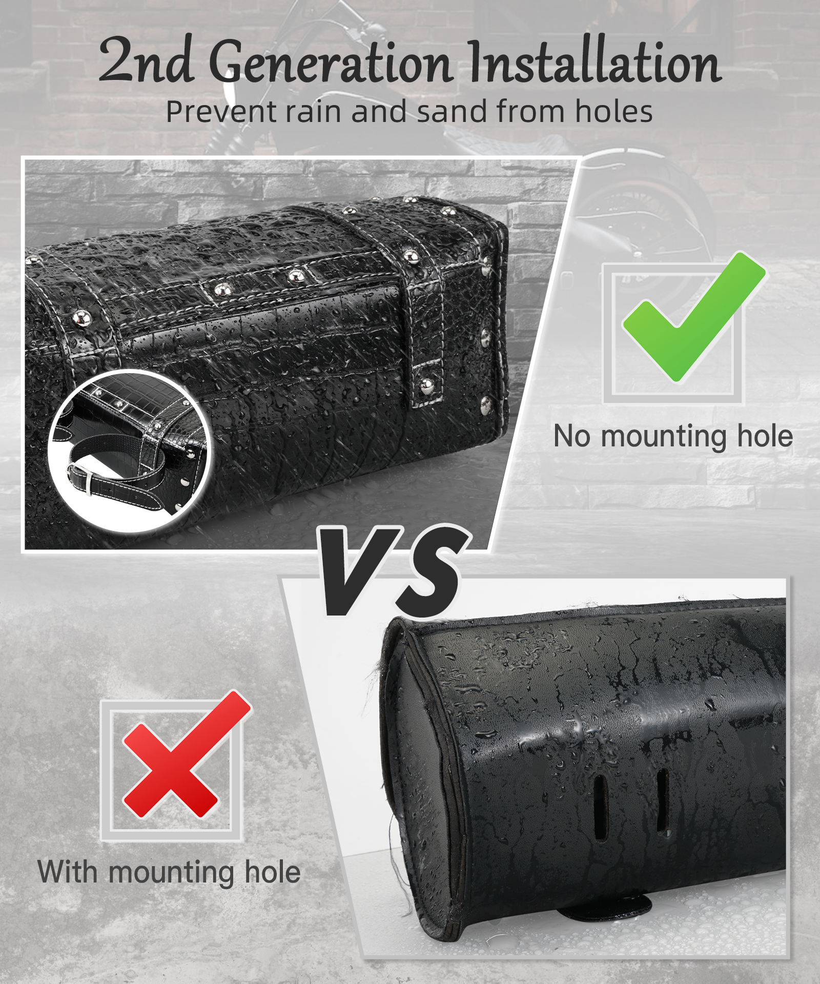 【Triple Protection】This motorcycle tool storage bag comes with an extra extend Velcro strap, a protecting cover, 2 leather straps with silicone non-slip point, which keep stable for long rides and the protecting cover against heavy rain and UV.