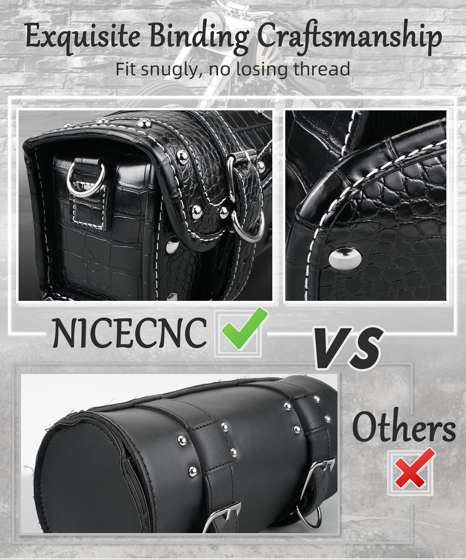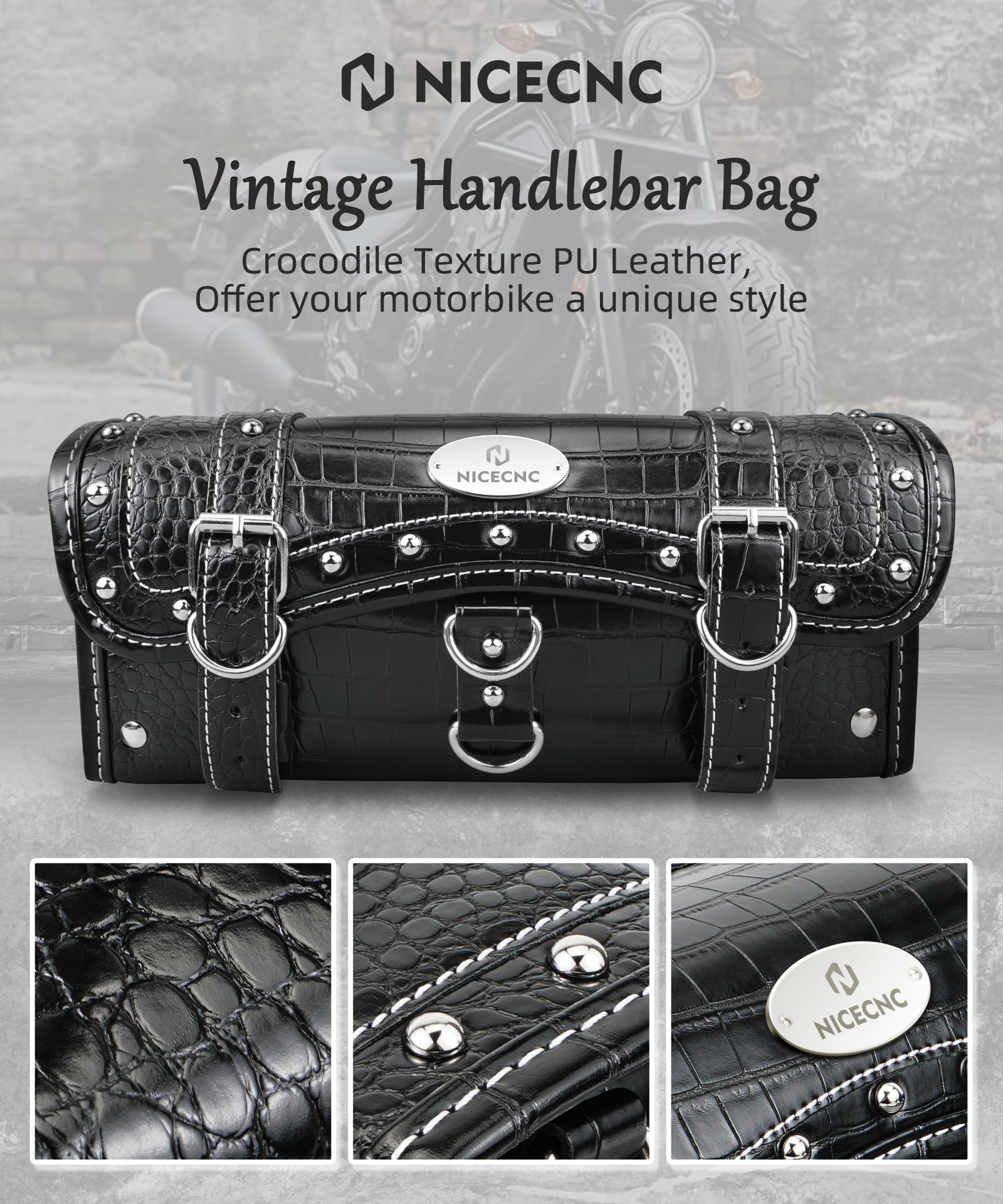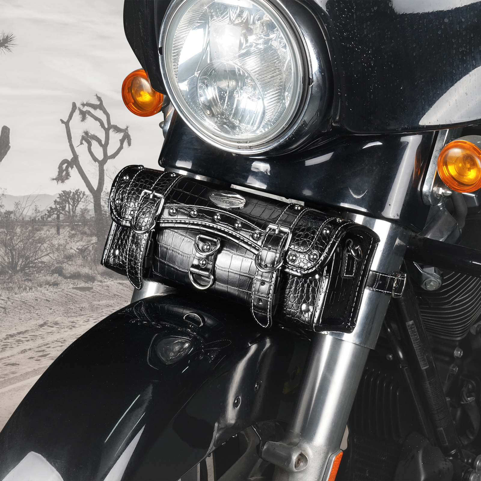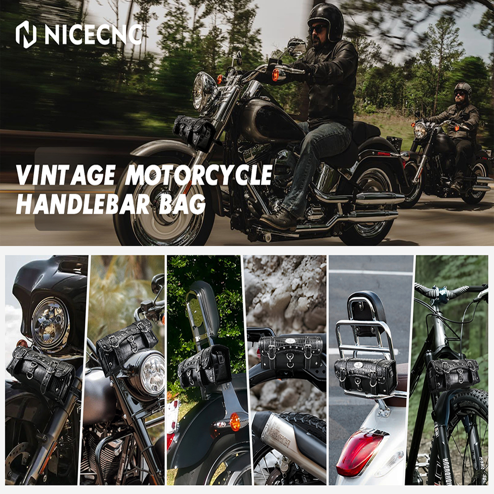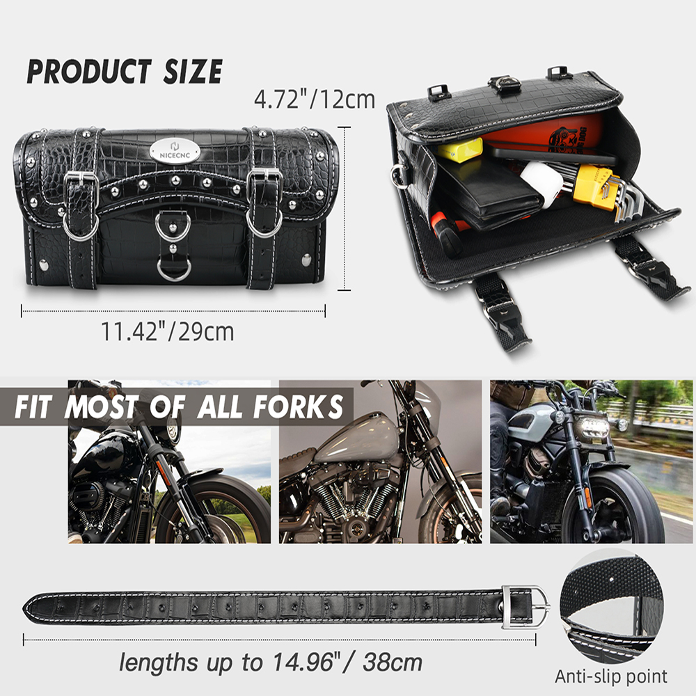 【Widely Used】NICECNC motorcycle handlebar bag is equipped with upgraded length 13.8 inch self-adjusting leather straps that can be adapted to various sizes of motorcycle forks or vertical bar, such as: motorcycle handlebar, front fork, sissy bar.