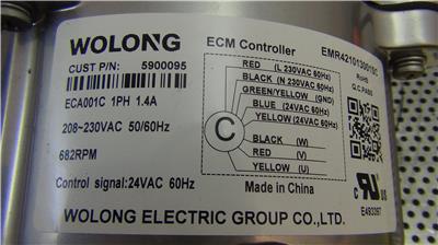 Wolong ECM Controller - 5900095 - EMR421013001SC - Excellent - removed from furnace with damaged shett metal - never used