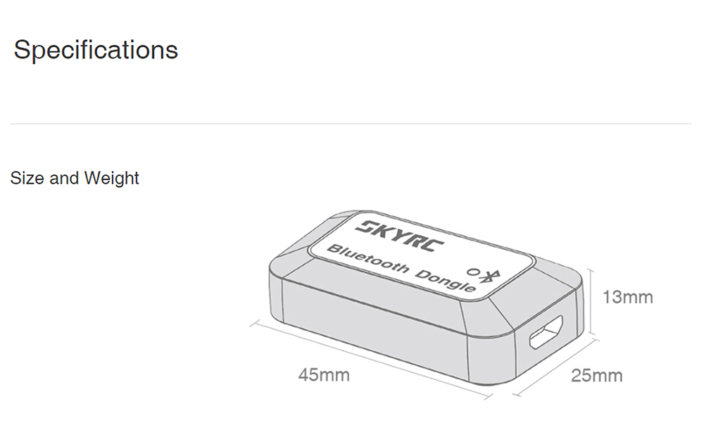 Thank you for purchasing SkyRC Bluetooth Dongle (SK-600135). Bluetooth Dongle lets you establish a connection between the SkyRC gadget and your smartphone to control and monitor the device via the app.