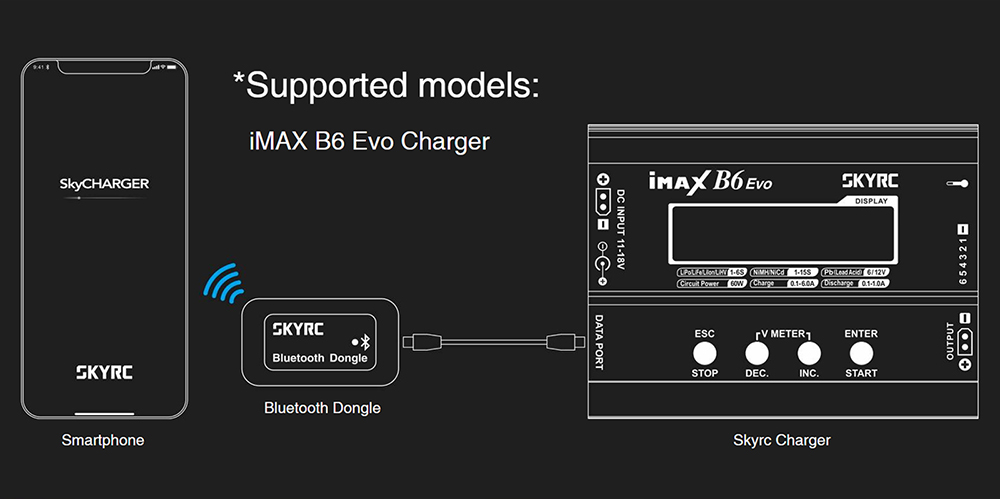 4.SKYRC Bluetooth Dongle Add Wireless Capabilities to your SkyRC Gears SK-600135 Only Supported NC2200 iMAX B6 Evo Charger