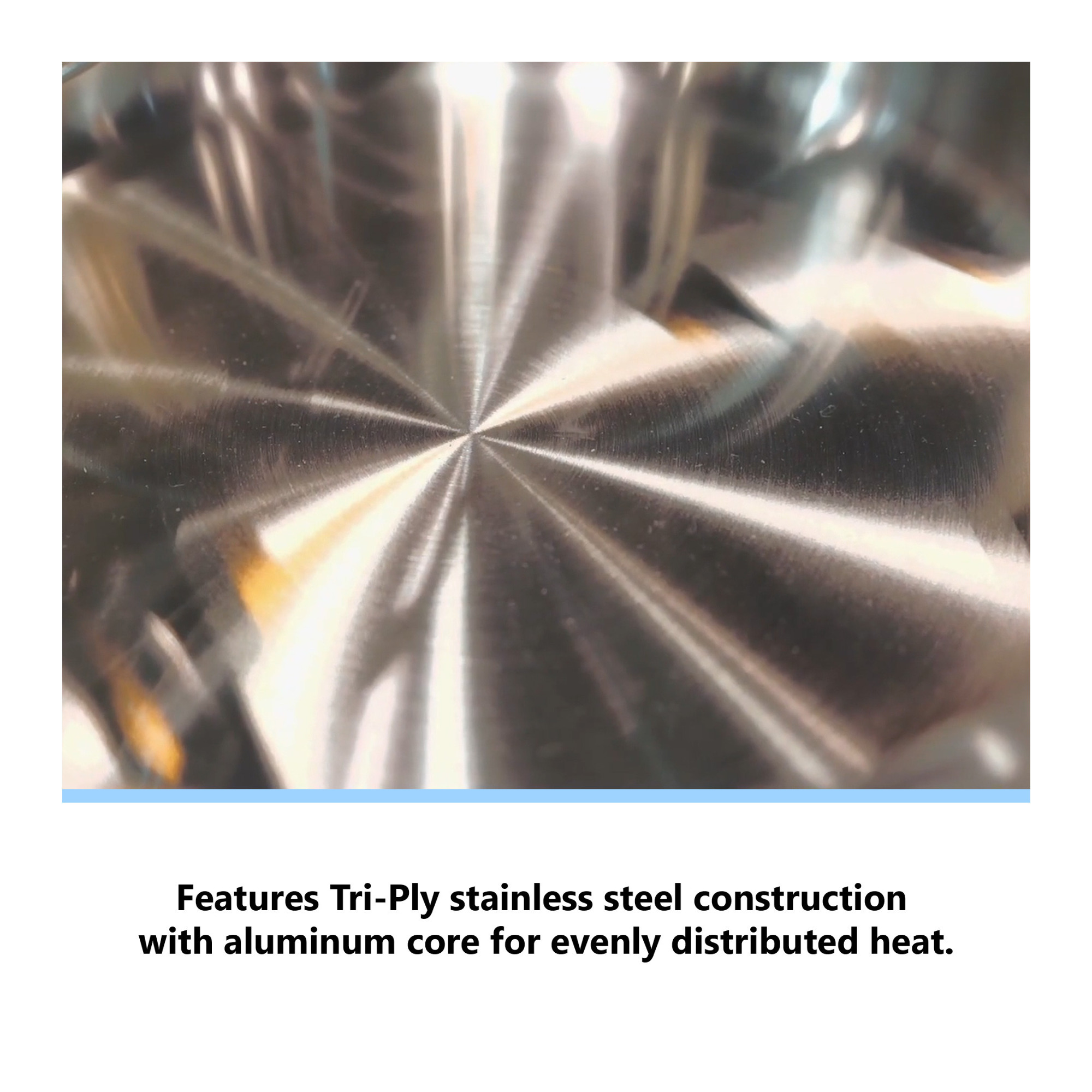 Our Tri-Ply Aluminum core technology allows for even heating of the pan which allows for maximum control which results in perfect browning, searing, and sautéing of foods.