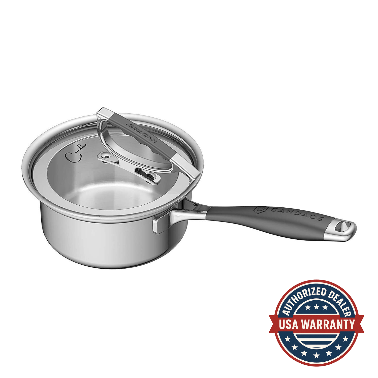 The CookCraft Sauce Pan with Glass Latch Lid has a contemporary style with a glass latch lid which is perfect for watching your food cook. The 1.5-quart size is ideal for making small batches of soups and sauces. The Tri-Ply stainless steel construction with an aluminum core evenly distributes heat.
