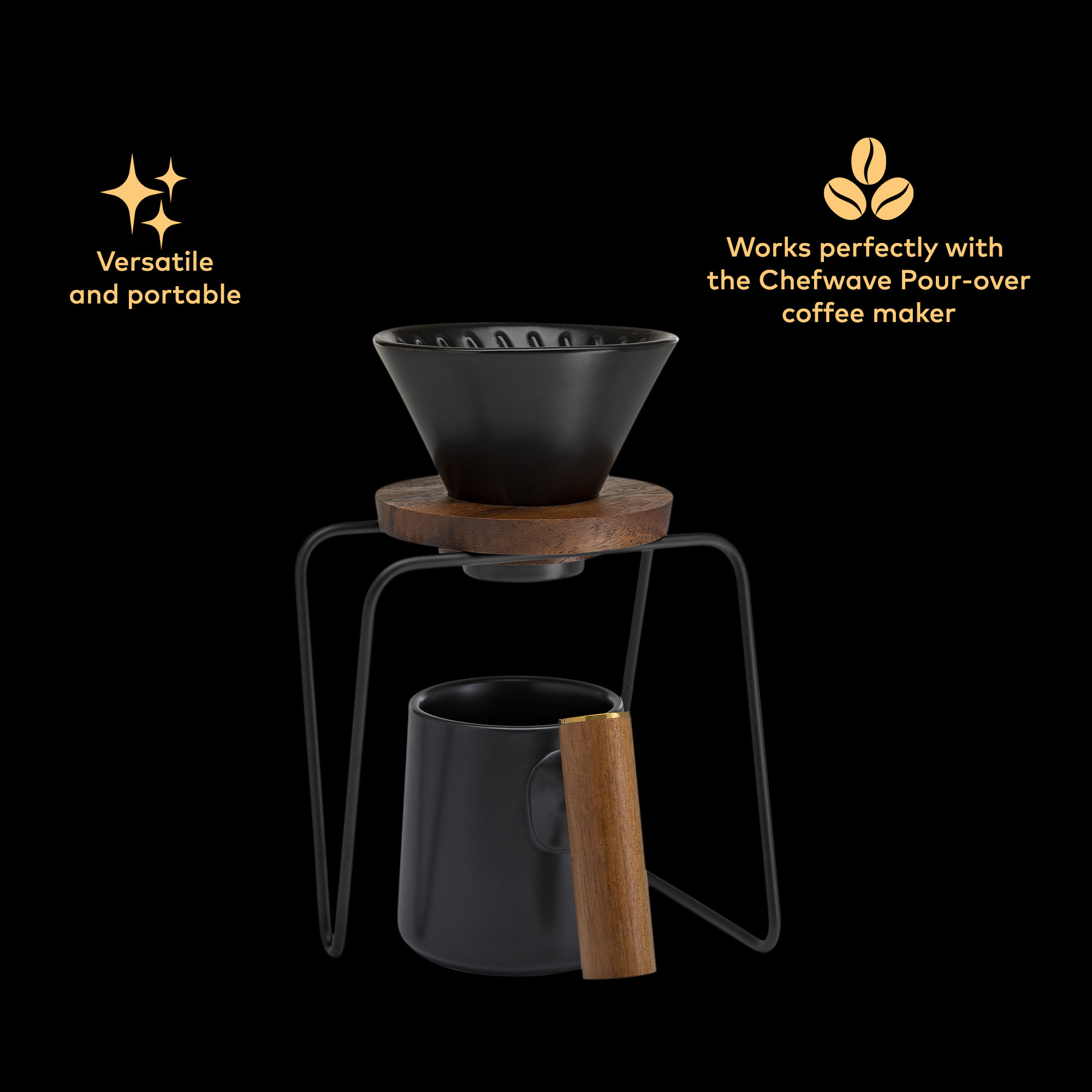 Perfect companion with the Chefwave Artisan series. It is the ideal size for the Pour Over Coffee Maker and compliments the Ceramic Teapot and French Press design from Chefwave.