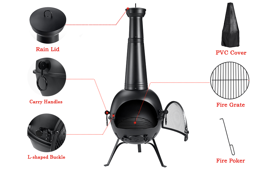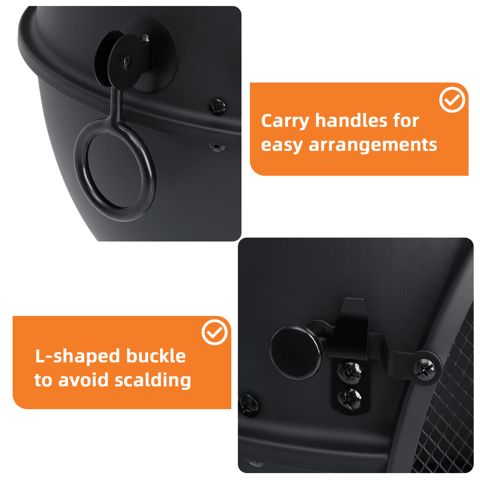 SAFETY: The handle on the outdoor fireplace door is convenient for adding firewood during use, and the handle can be used without touching the hot fire pit. The meshed iron door blocks the sparks from flying, so people sitting next to them won't hit by sparks