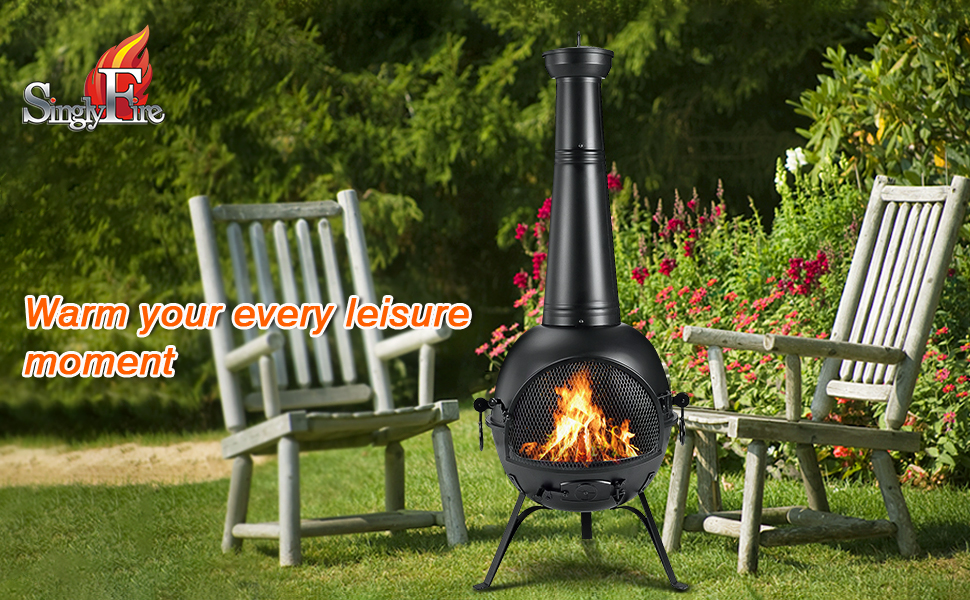 SINGLYFIRE 55in Large Chiminea Fire Pit Chimenea Fireplace Cast Iron Outdoor Fireplace Garden Treasures Cast Iron Wood Burning With Cover