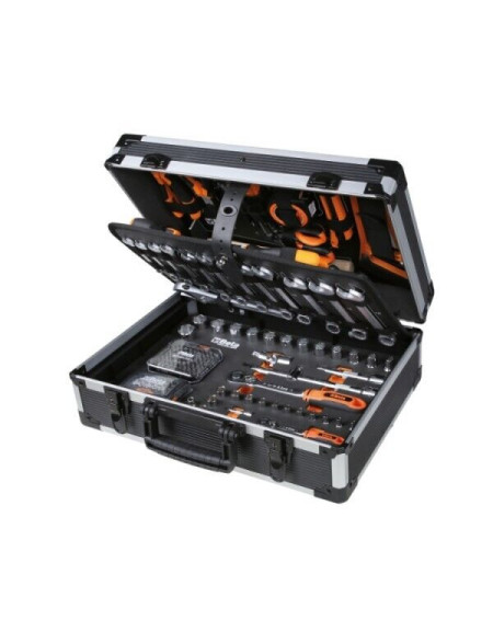 Questa valigia, realizzata con pannello interno rimovibile presenta una dotazione di utensili manuali Beta Worker organizzati in vassoi morbidi realizzati in EVA per mantenere sempre in ordine e ben identificabile ogni strumento. La dotazione dell'articolo 020566010 è composta da 163 pezzi, nello specifico comprende i seguenti articoli Beta Worker: - 12x Beta BW 42 Chiavi combinate da 8 - 9 - 10 - 11 - 12 - 13 - 14 - 15 - 16 - 17 - 18 - 19 mm - 1x Beta BW 96BPC/SC9 Serie di 9 chiavi maschio esagonale piegate con estremità sferica da 1,5 - 2 - 2,5 - 3 - 4 - 5 - 6 - 8 - 10 mm - 1x Beta BW 111 Chiave regolabile a rullino 250 mm - 1x Beta BW 1048 Pinze regolabili a cerniera chiusa 250 mm - 1x Beta BW 1128BMX Forbici per elettricisti a lame dritte 150 mm - 1x Beta BW 1082BM Tronchesi a taglienti diagonali 160 mm - 1x Beta BW 1166BM Pinze a becchi mezzotondi dritti 160 mm - 6x Beta 1201E Cacciavite a lama piatta da 2,5x50 - 3x75 - 4x125 - 5,5x150 - 6,5x150 - 8x150 mm - 2x Beta 1202E Cacciavite a croce Phillips misure PH1x80 - PH2x100 mm - 1x Beta BW 1253 Cacciavite cercafase da 3,5x100 mm - 2x Beta 1209E/PZ Cacciavite con impronta a croce Pozidriv - Supadriv misure PZ1x80 - PZ2x100 mm - 1x Beta BW 1256/C21-1 Cassetta di inserti microgiravite con impugnatura 22 pezzi - 1x Beta BW 1370 Martello tipo tedesco 300 g - 1x Beta BW 1692/5 Flessometro da 5 metri - 1x Beta 1771 Cutter da 18 mm - 1x Beta BW 1725CR Miniseghetto da 150 mm - 1x Beta BW 861/C61 Astuccio con inserti e portainserti magnetico 61 pezzi - 1x Beta BW 895/1 Bussola portainserti - 13x Beta BW 900 Chiavi a bussola esagonali 1/4" da 4 - 4,5 - 5 - 5,5 - 6 - 7 - 8 - 9 - 10 - 11 - 12 - 13 - 14 mm - 1x Beta BW 900/20 Prolunga 1/4" da 50 mm - 1x Beta BW 900/20L Prolunga 1/4" da 100 mm - 1x Beta BW 900/25 Snodo 1/4" - 1x Beta BW 900/30 Quadro con impugnatura 1/4" - 1x Beta BW 900/42 Quadro scorrevole 1/4" da 110 mm - 1x Beta BW 900/55 Cricchetto reversibile da 1/4" - 13x Beta BW 920A Chiavi a bussola esagonali 1/2" da 10 - 11 - 12 - 13 - 14 - 15 - 16 - 17 - 18 - 19 - 21 - 22 - 24 mm - 1x Beta BW 920/21 Prolunga 1/2" da 125 mm - 1x Beta BW 920/25 Snodo 1/2" - 1x Beta BW 910/16F Raccordo femmina 3/8" e maschio 1/2" - 1x Beta BW 920/22 Prolunga 1/2" da 250 mm - 1x Beta BW 920/55 Cricchetto reversibile 1/2" |