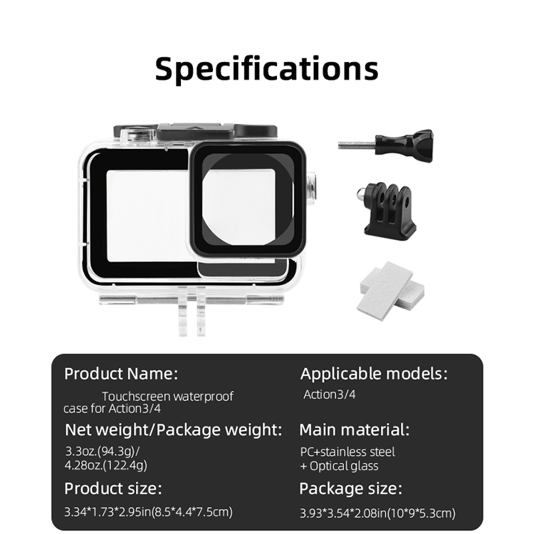 Touchscreen Waterproof Case Camera Accessories for DJI OSMO Action 3/4 Camera