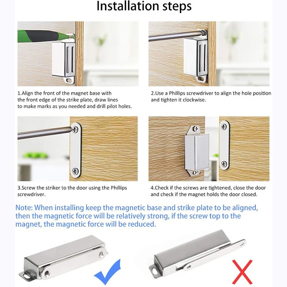 *Wide Application: Not only for heavy door closing, also can be used as a small tool holder within strong magnetic force. You can install this super magnet catch on your workbench to hold small metal tool, such as screwdriver, wrench, etc.