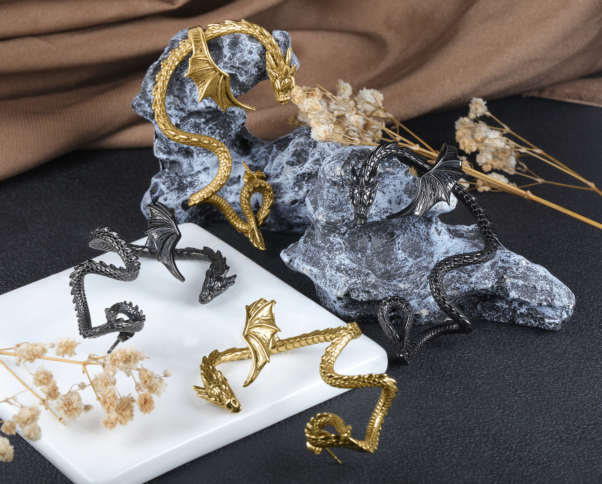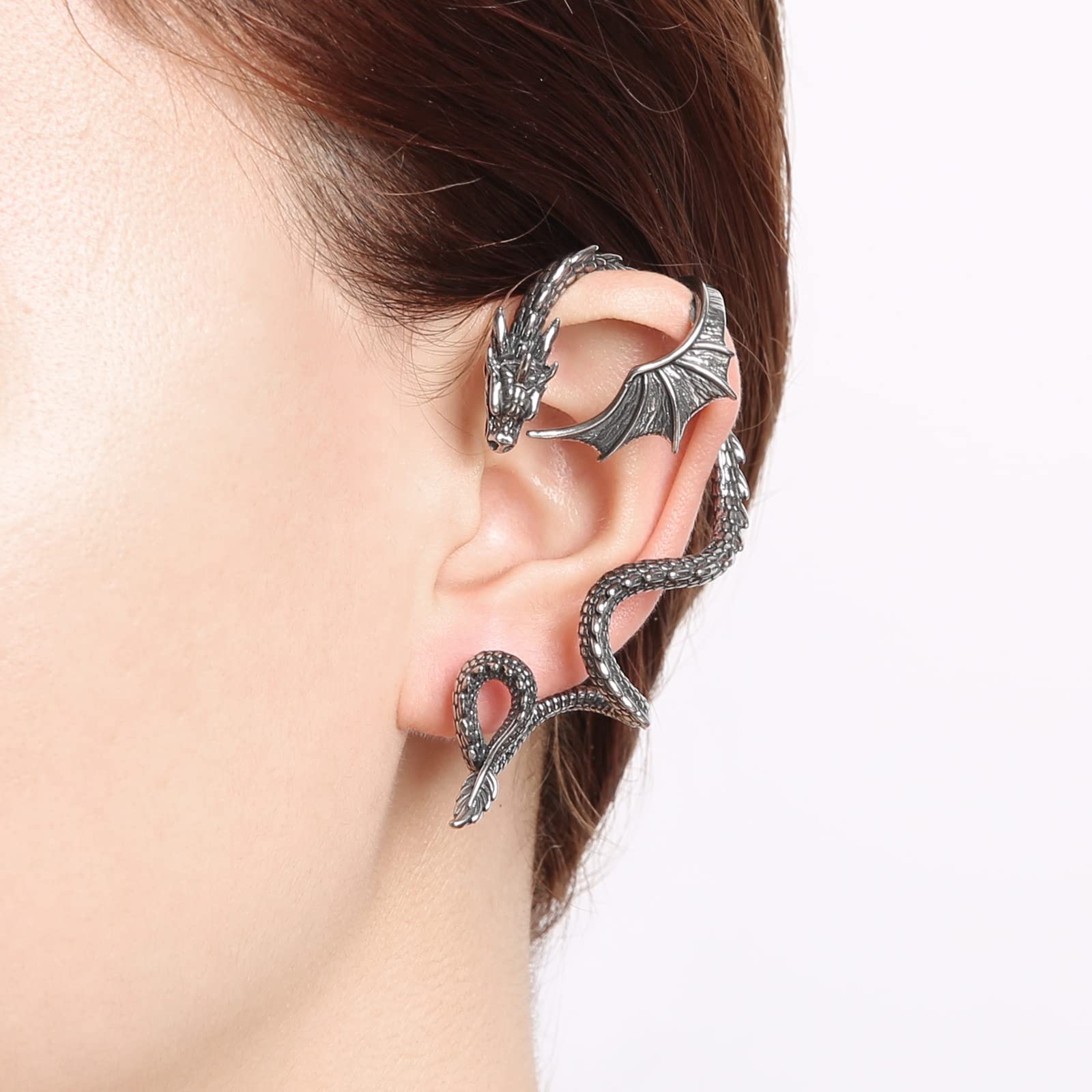 1 Pc 20g Stainless Steel Dragon Earrings Retro Punk Gothic Stud Earring Jewelry