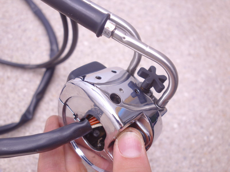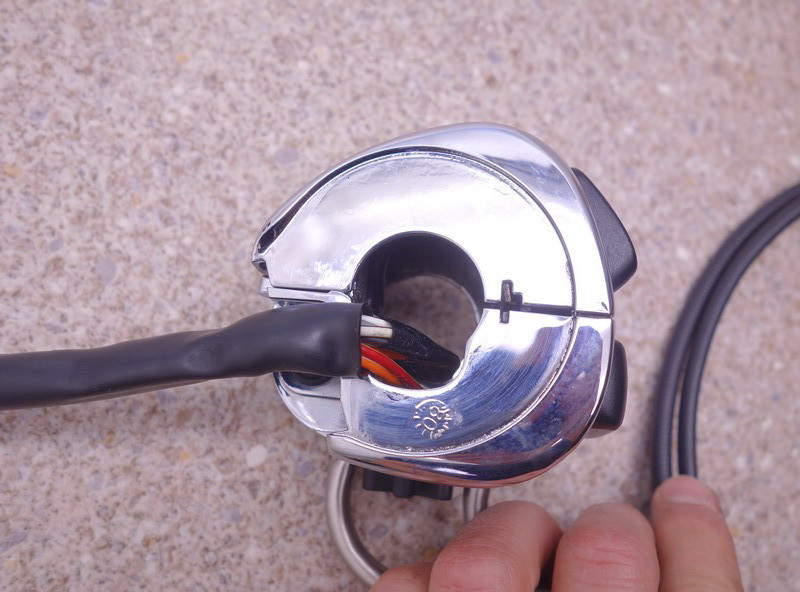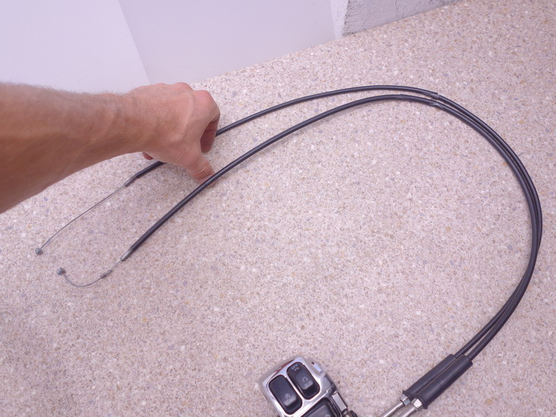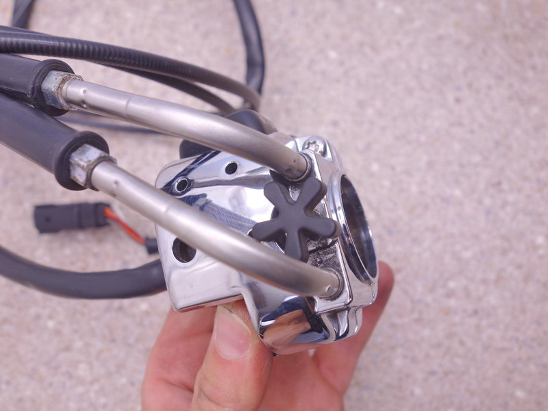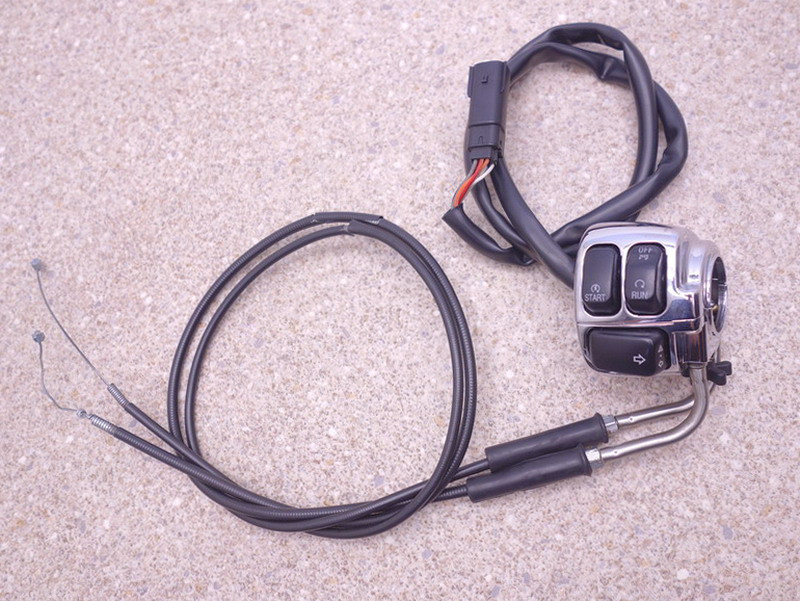 Rechter Lenkerschalter (Kombischalter, Schalt-Armatur, Schalter-Einheit rechts) inkl. Gasdrehgriff-Fixierung, Anschlußkabel und Paar Gasseile (Gaszug).
