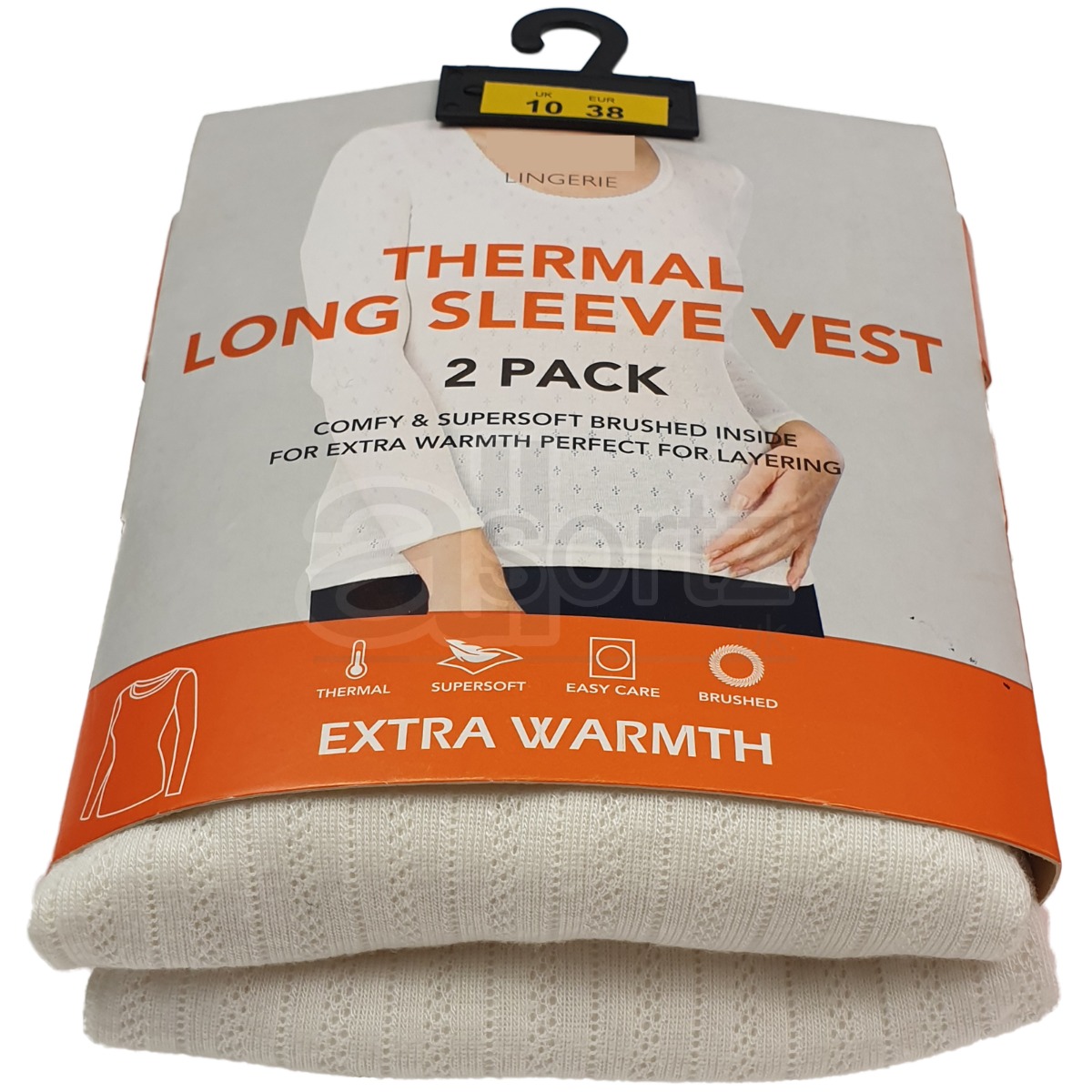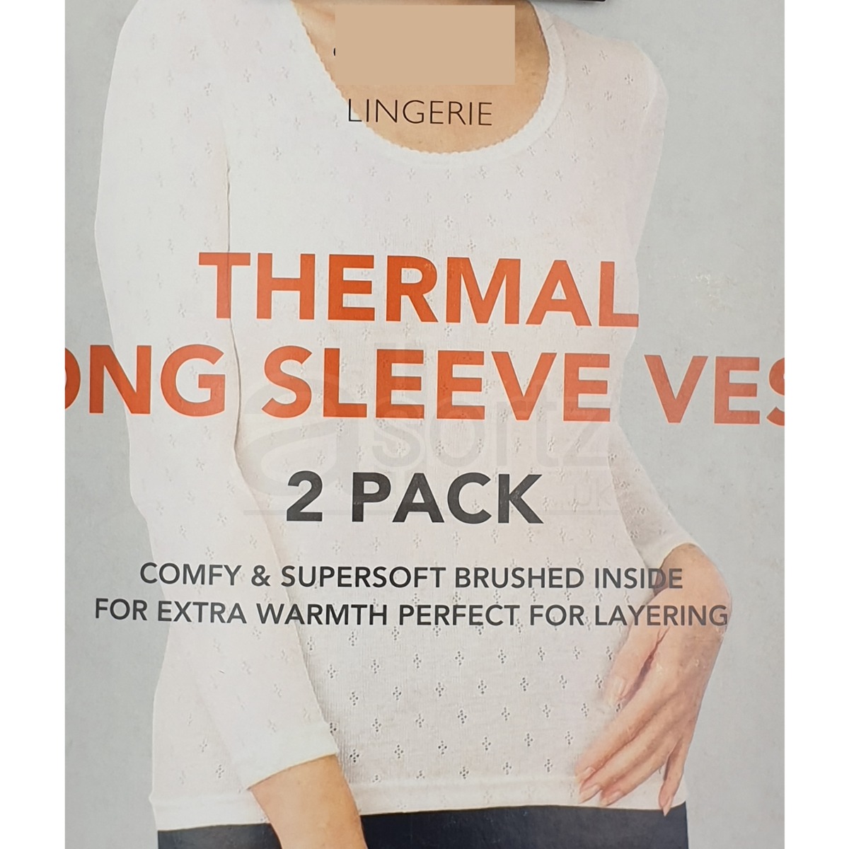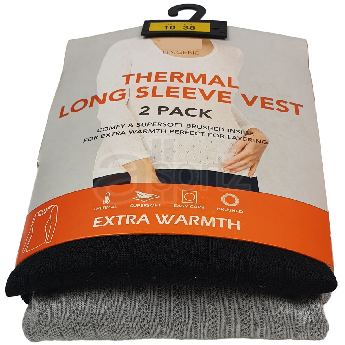 Ladies 2 Pack Thermal Long Sleeved Vest Tops