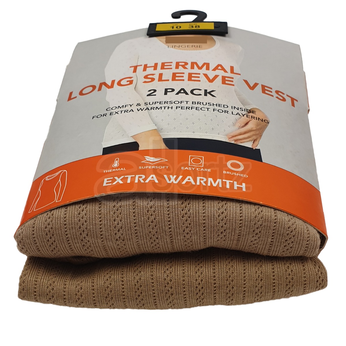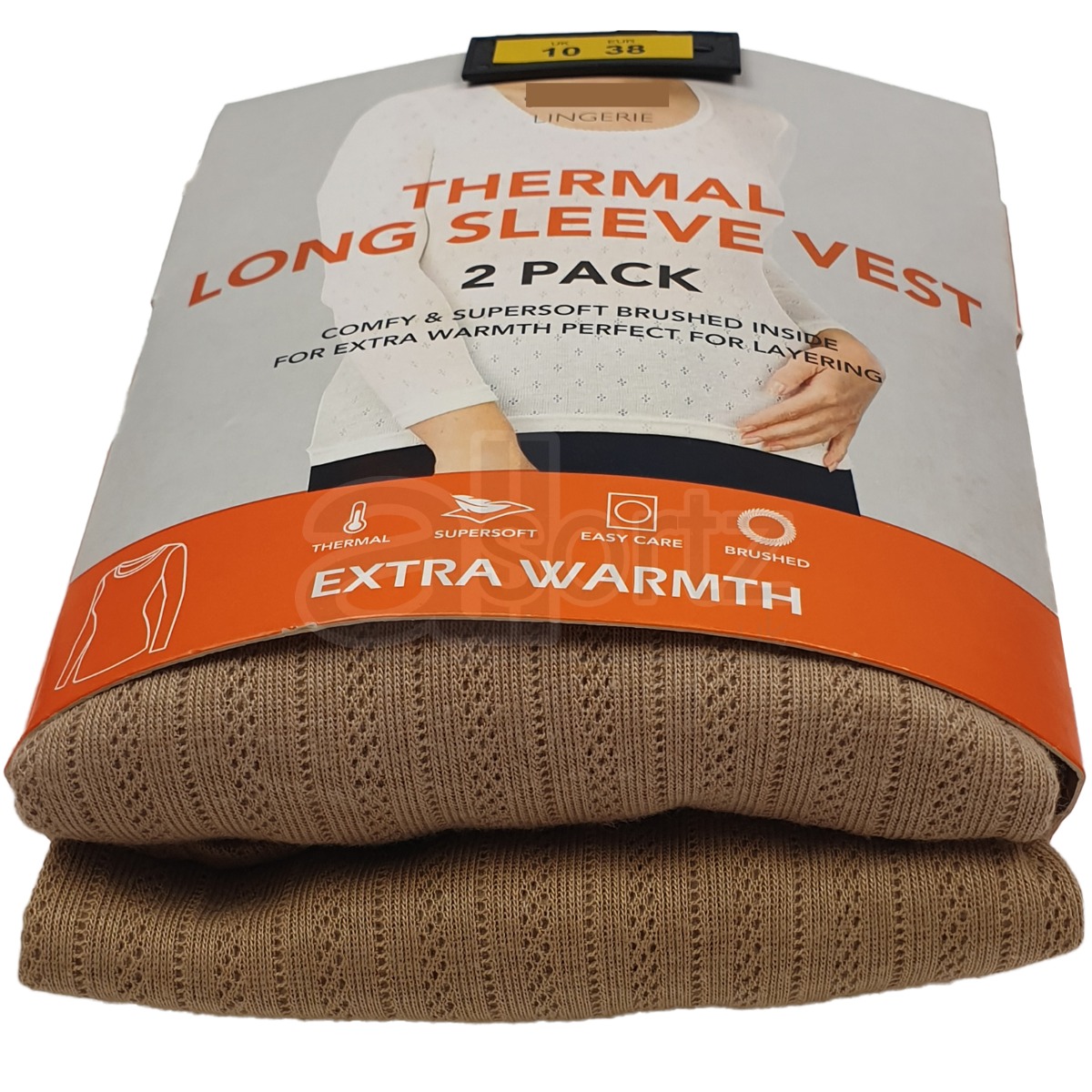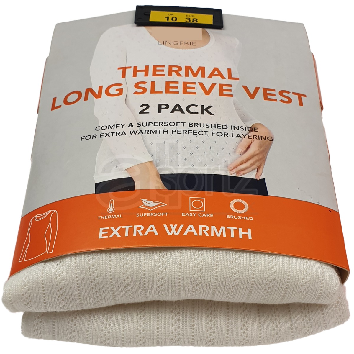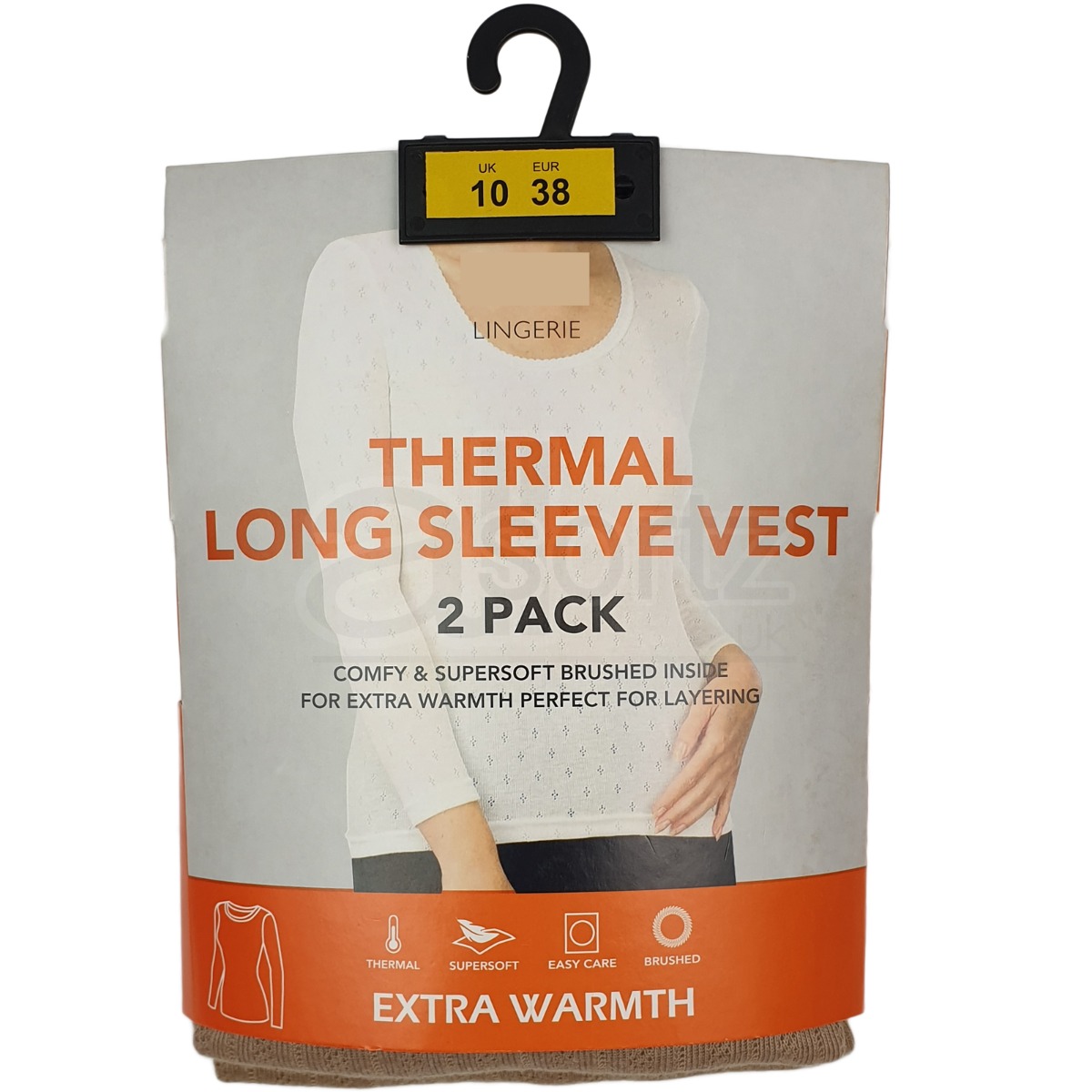 Ladies 2 Pack Thermal Long Sleeved Vest Tops