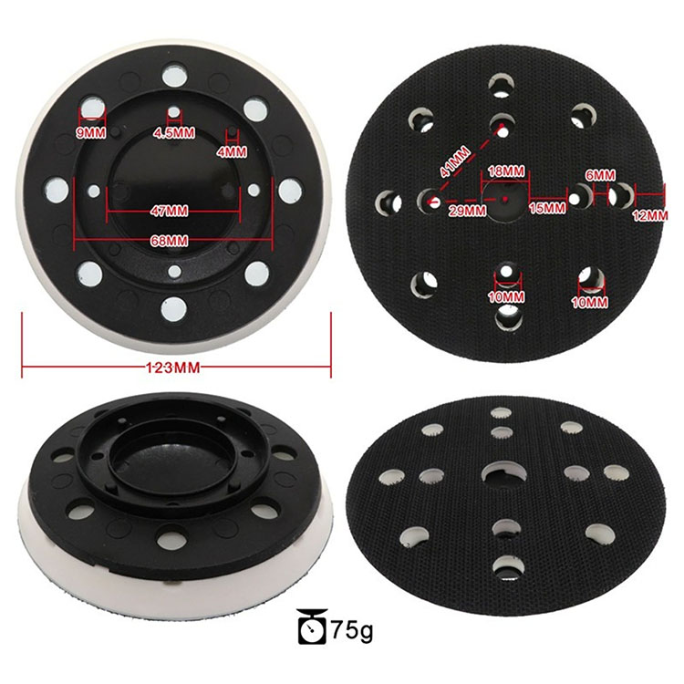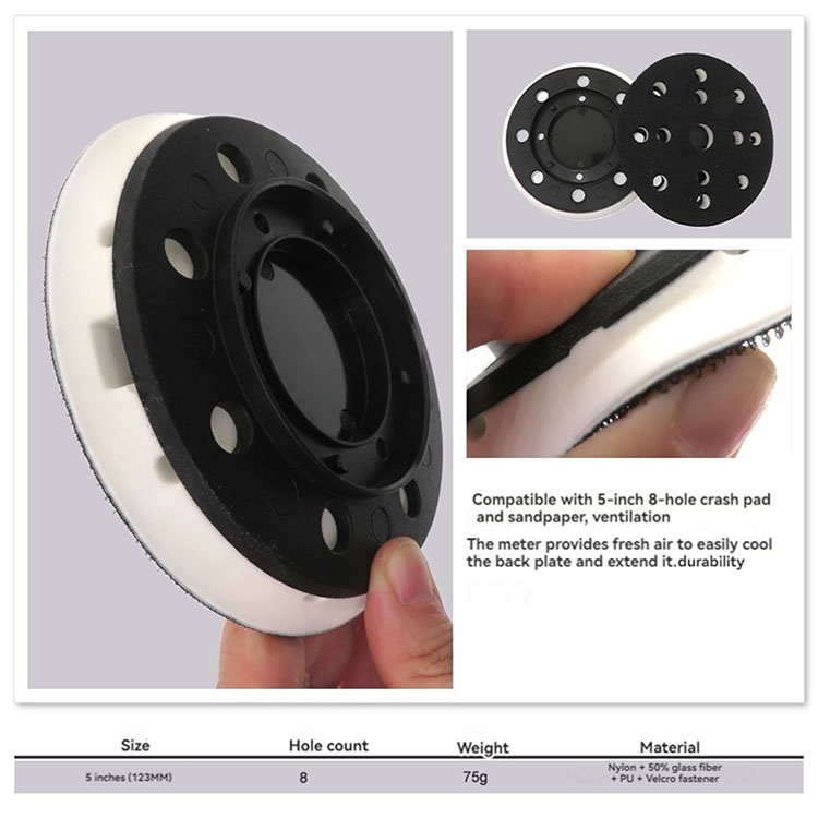 l Compatible with 5-inch 8-hole cushion and sandpaper, ventilated design provides fresh air, easy to cool the backing plate, prolong durability