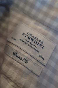 Mens Charles Tyrwhitt Gray, White Plaid Button Down Shirt 16/34 in*