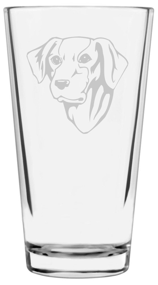 This is a high quality pint glass etched with a beautiful dog logo.