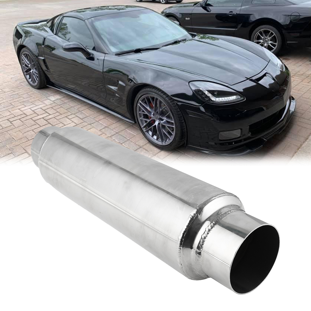 SIZE: Inlet: 2.5" inner diameter - Outlet: 2.5" inner diameter. Both ends can be inlet, no inlet or outlet difference. Please measure your exhaust pipe’s dimension before purchasing this 2.5 inch muffler.