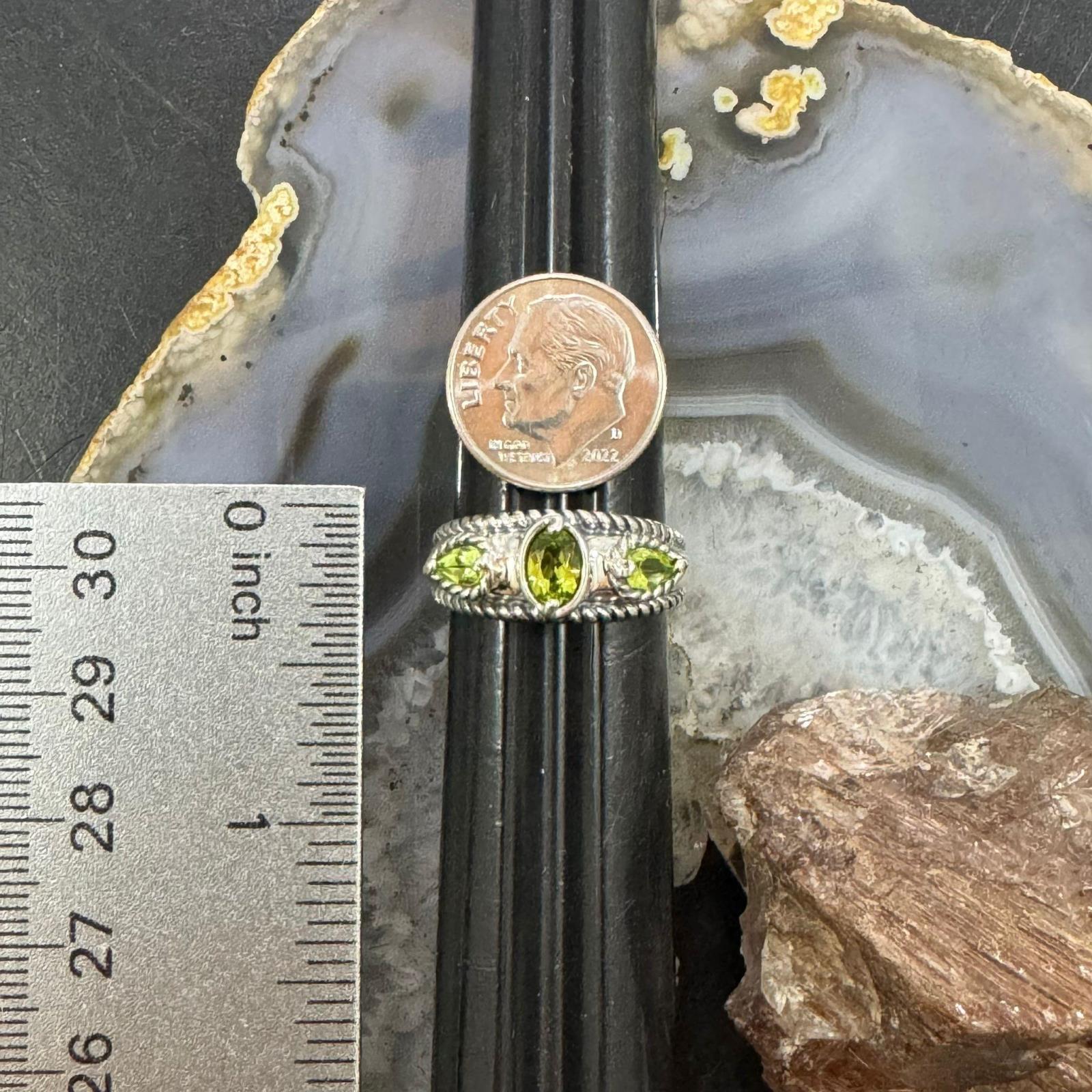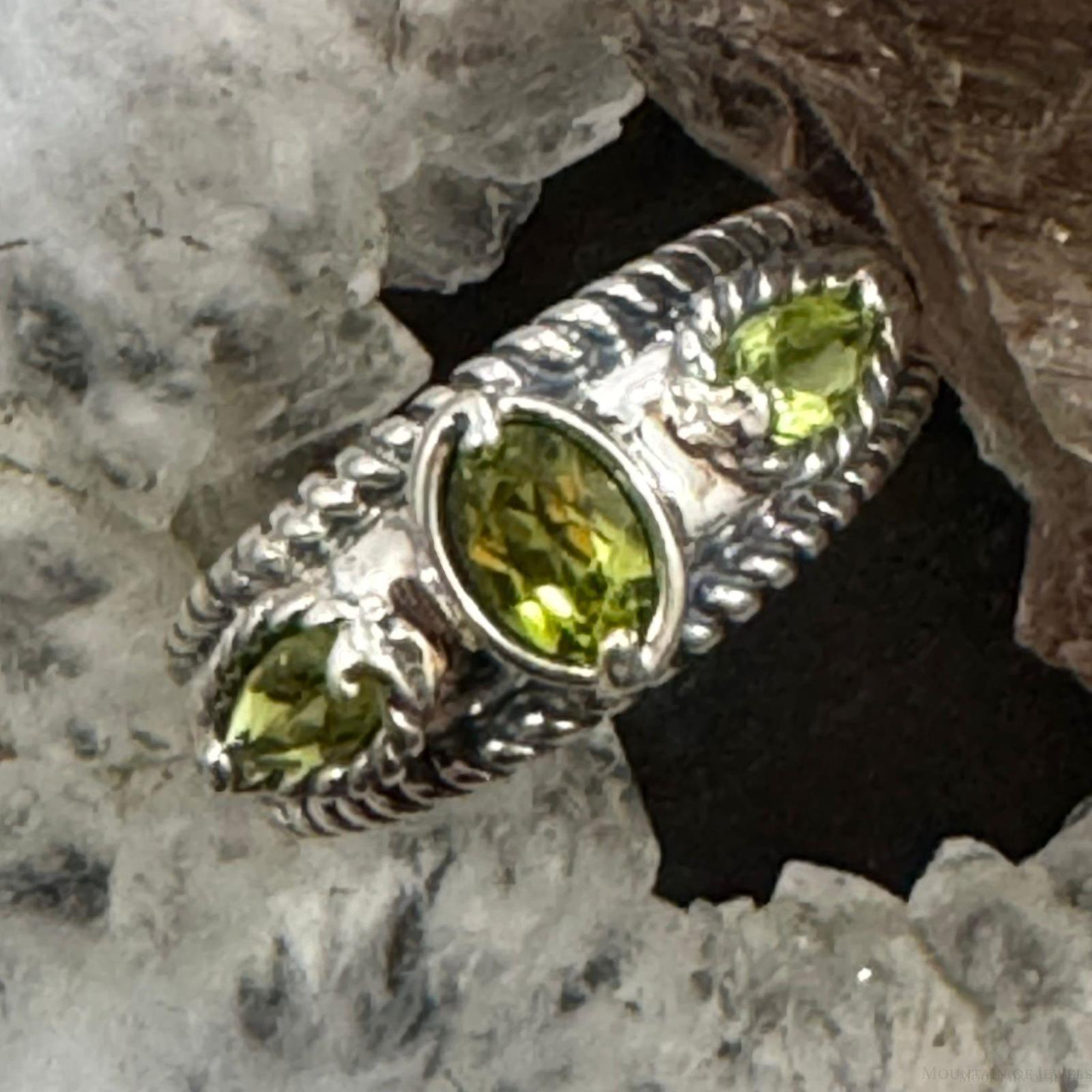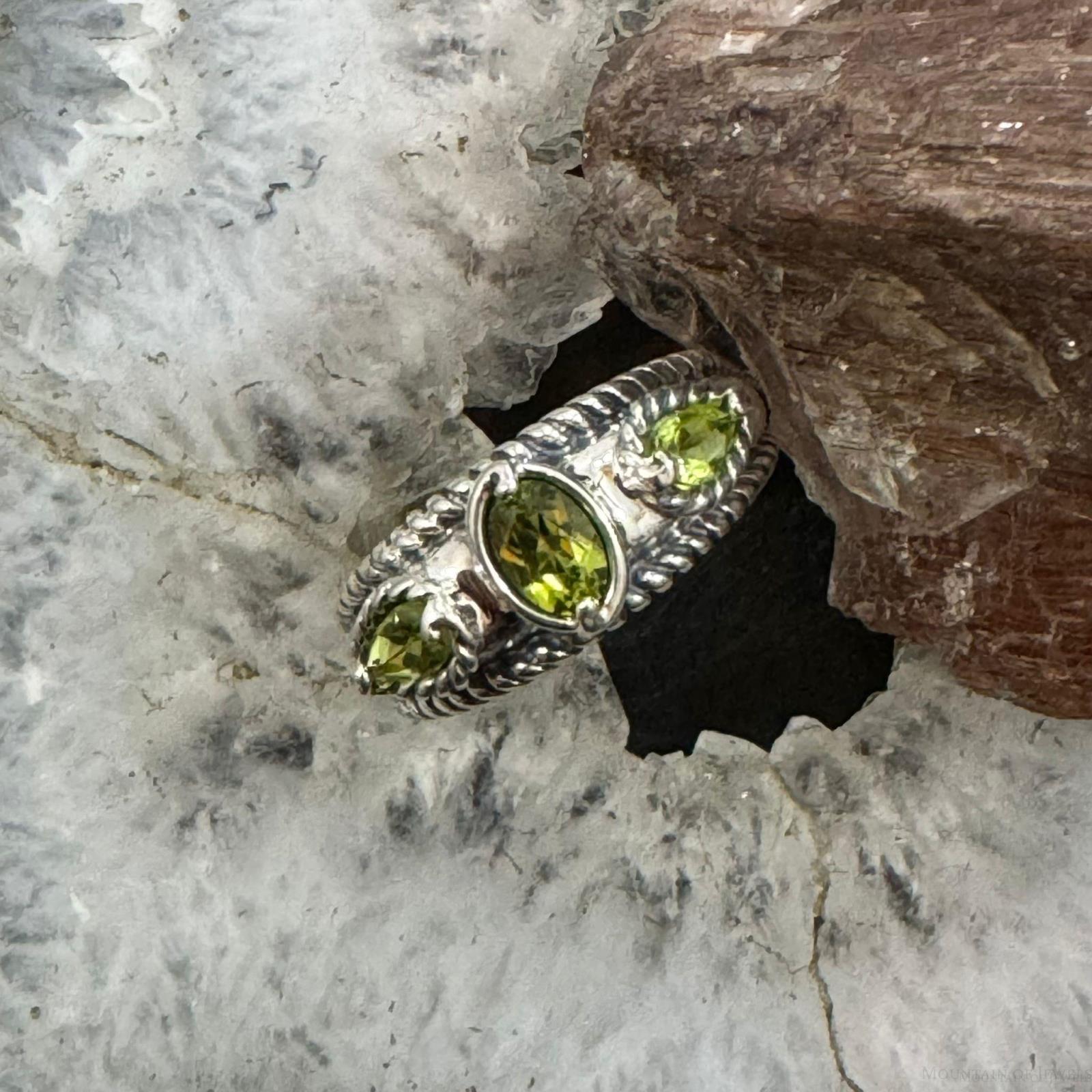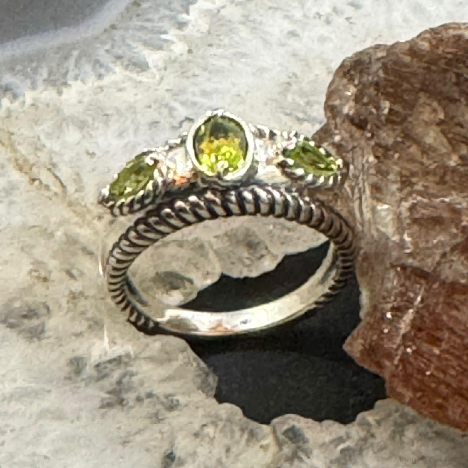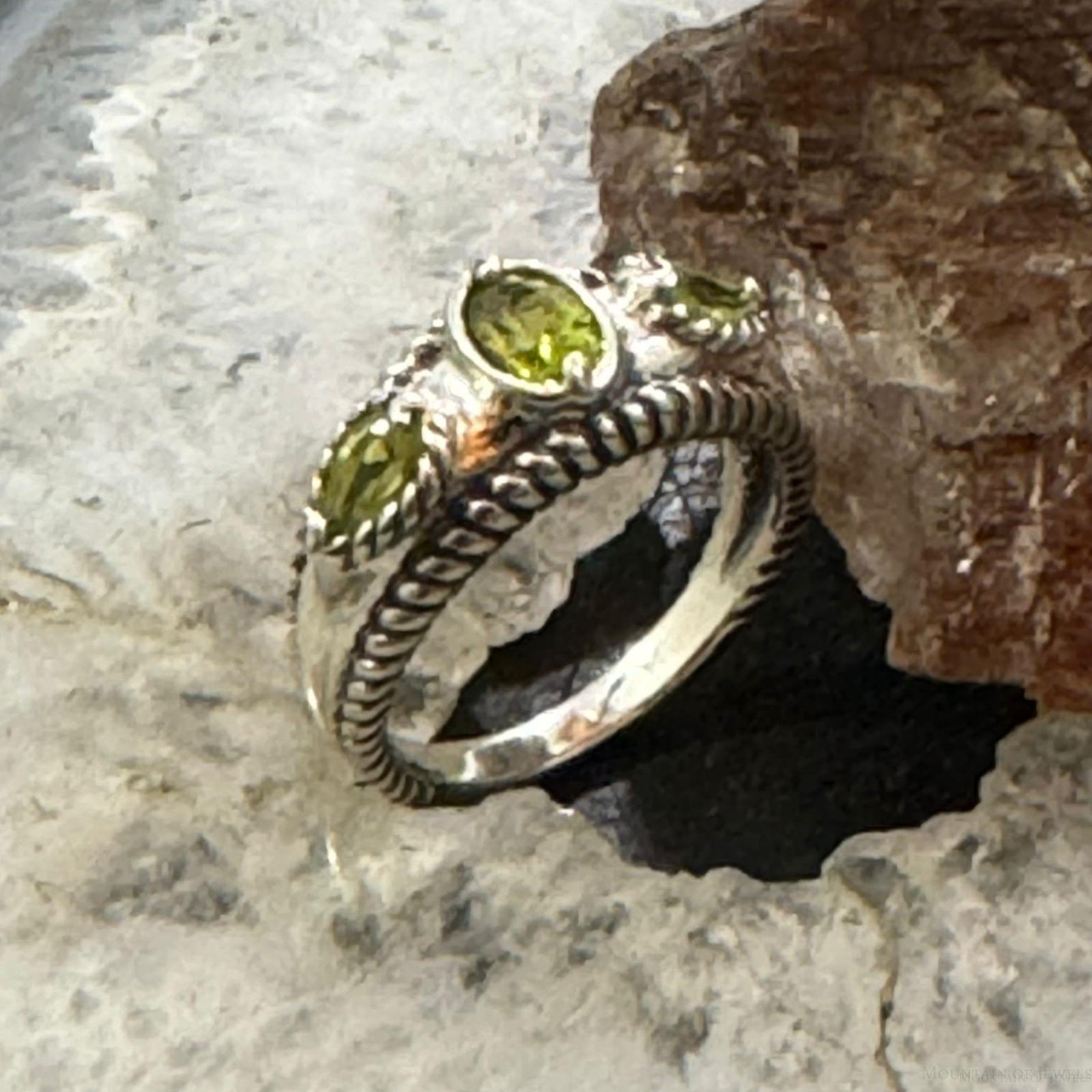Carolyn Pollack Sterling Silver 3 Faceted Peridot Decorated Ring For Women