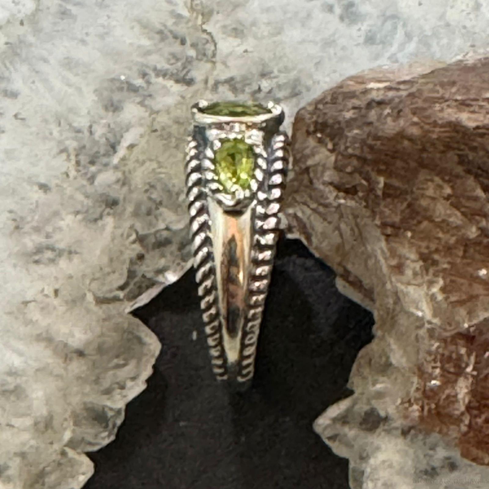Beautiful Carolyn Pollack Sterling Silver 1 Oval and 2 Pear Faceted Peridot Cabochons Decorated Ring For Women.