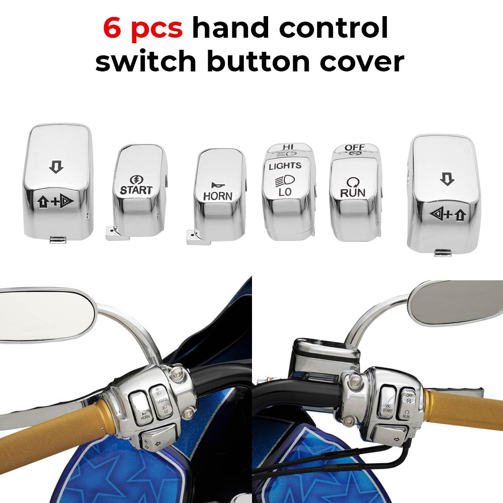 6pcs Chrome Hand Control Switch Cap Button Kit For Harley Softail Sportster Dyna