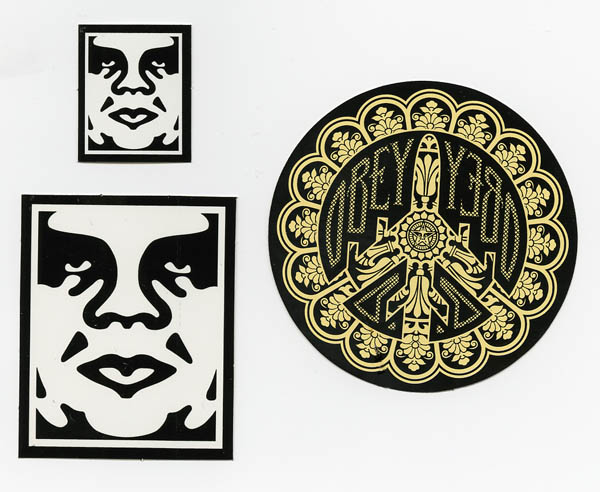 I have available 3 VERY DESIRABLE Shepard Fairey OBEY GIANT stickers. Here are the sizes of the stickers:
