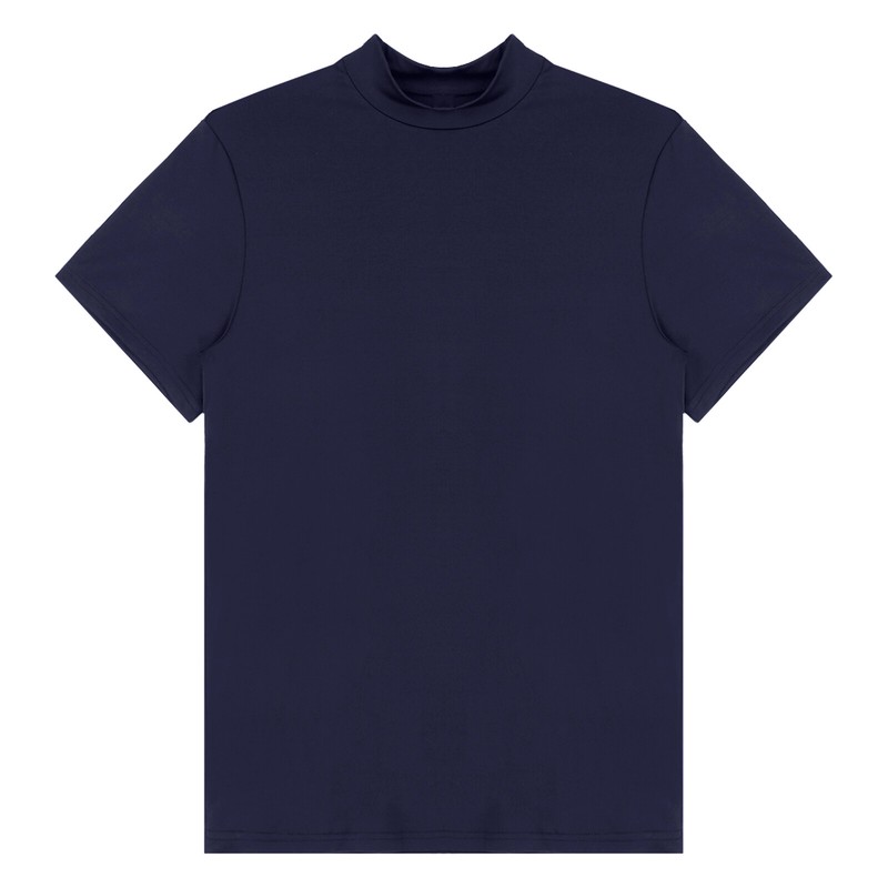 Slim fit t-shirt, solid color, basic design, mock neck, short sleeve, simple and casual.