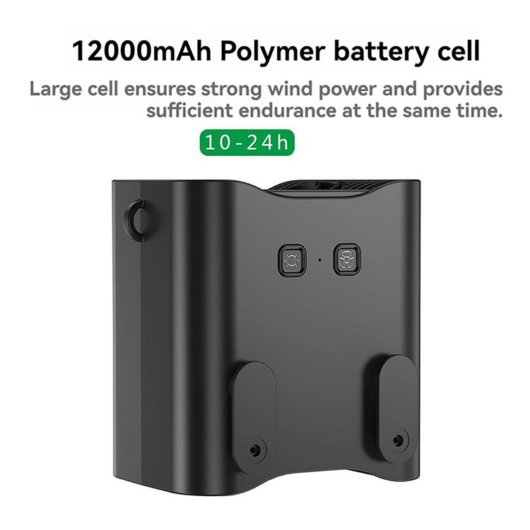 l 12000mAh Polymer battery cell. Large cell ensures strong wind power and provides sufficient endurance at the same time