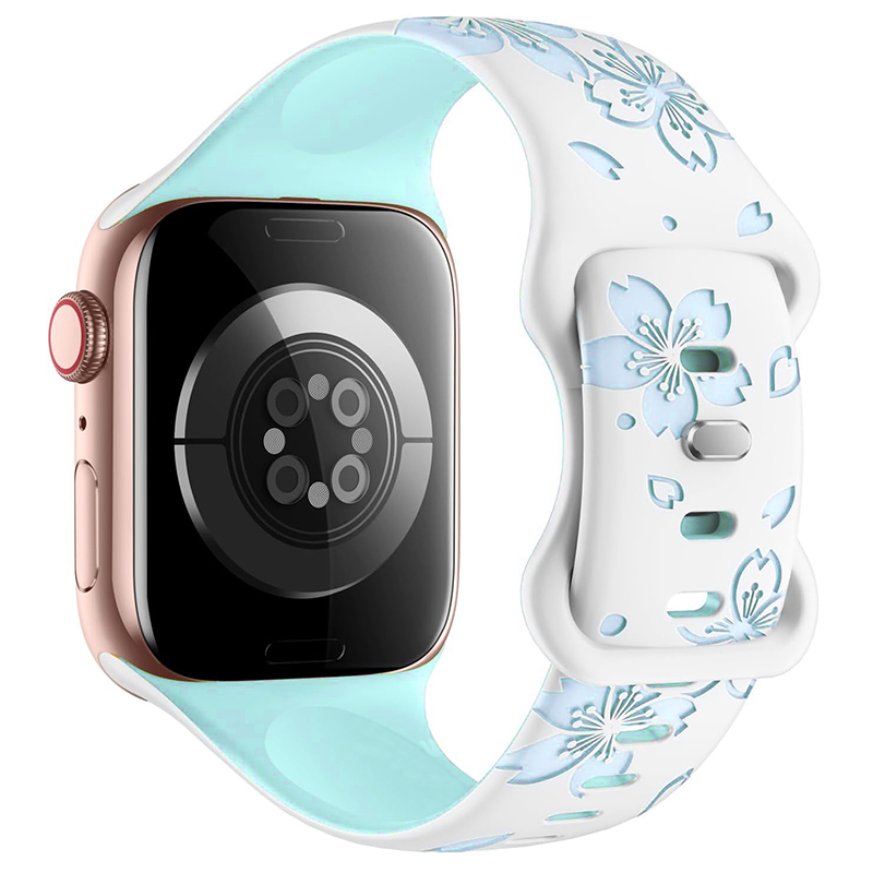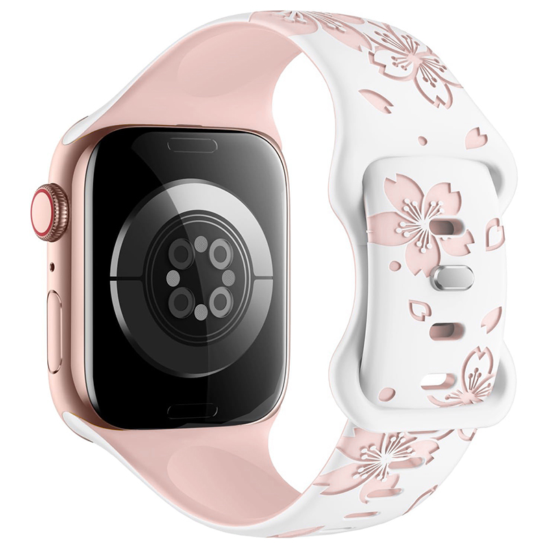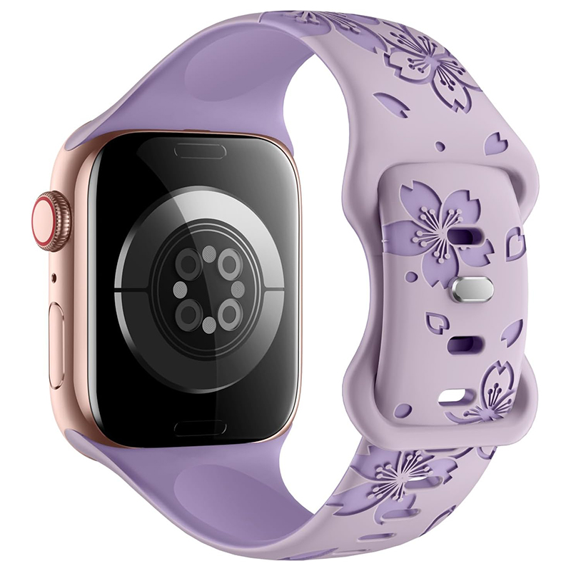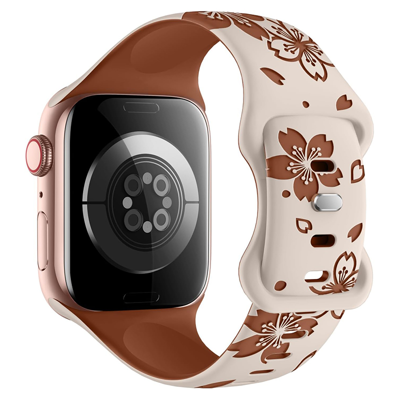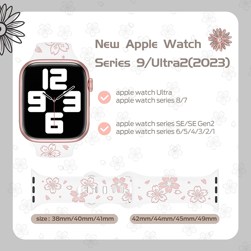Our flower laser pattern engraved silicone for iwatch bands compatible with Apple Watch 38mm 40mm 41mm 42mm 44mm 45mm 49mm, suitable for Apple Watch iWatch Sreis 9, Series Ultra 2,Series 8, Series Ultra,Series 7, Series 6, Series 5, Series 4, Series 3, Series 2, Series 1, SE .