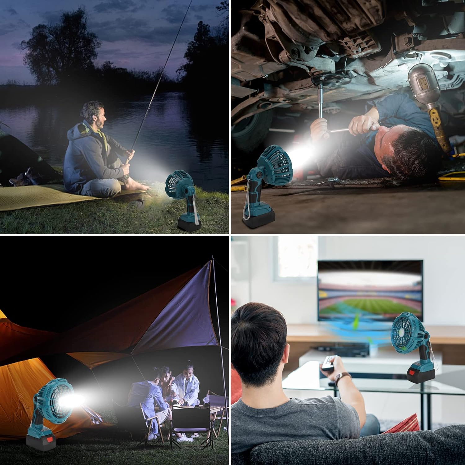 ❆【2 in 1 battery powered fan】This 6.5 inch industrial fan works compatible with bosch battery (not included), LED lamp and fan combo can help you stay comfortable in a hot workshop using the portable fan, which is also ideal for camping, travel, power outages and emergency needs.