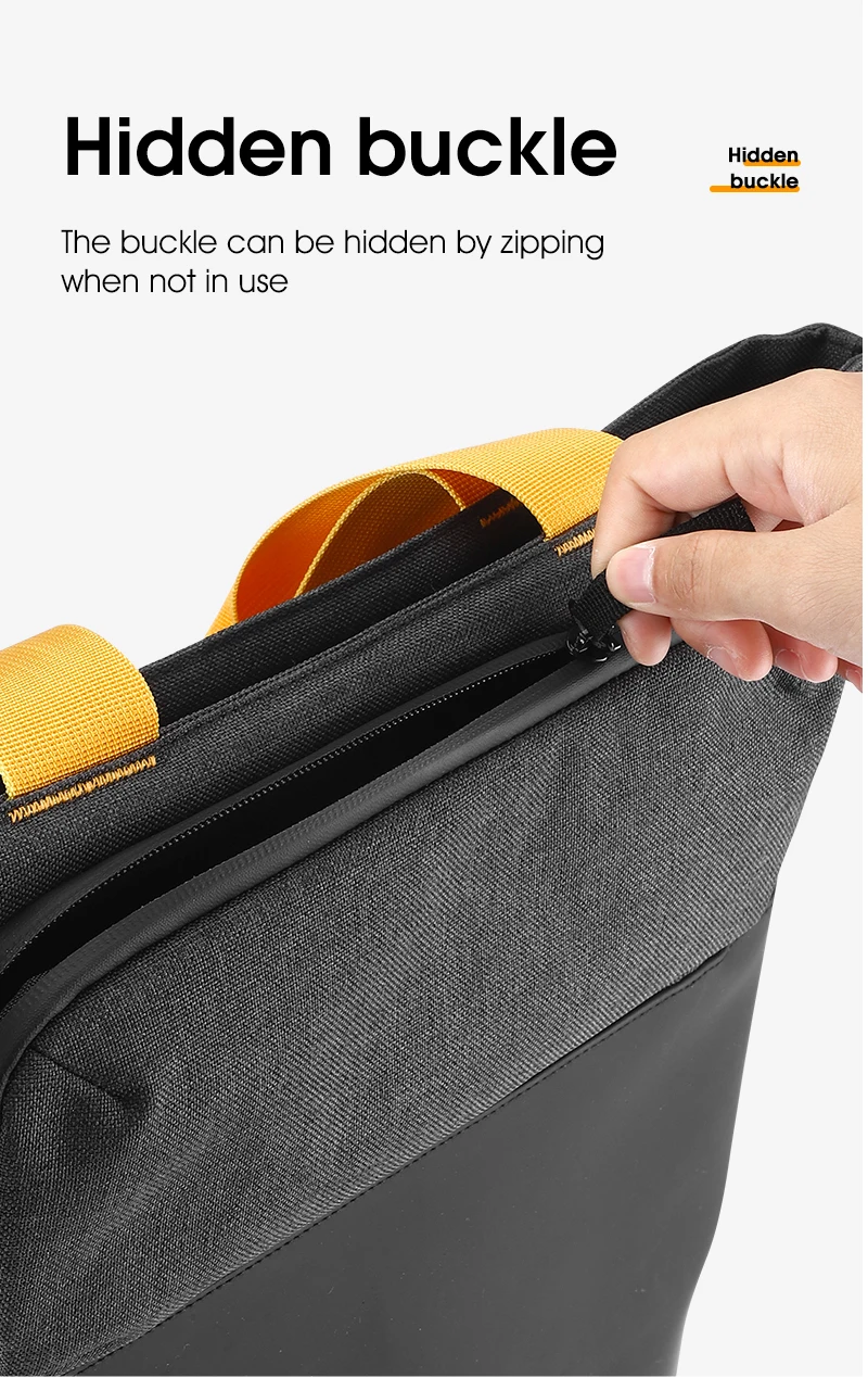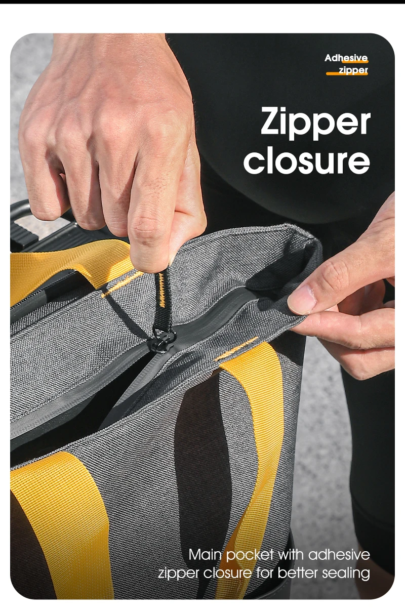 Structure: Main pocket + front pocket + yellow webbing strap