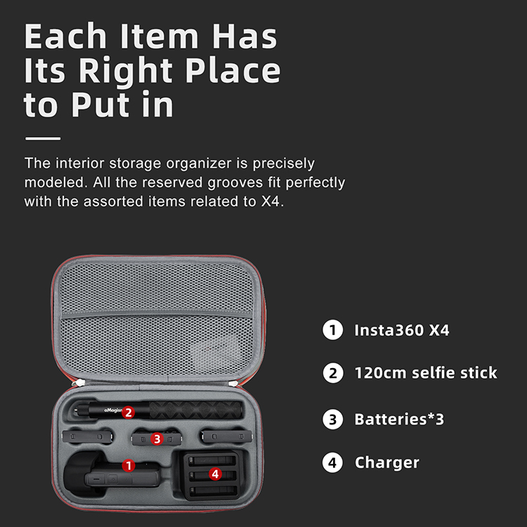 l The interior storage organizer is precisely modeled. All the reserved grooves fit perfectly with the assorted items related to X4