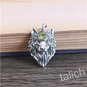 925 Sterling Silver Majestic Wolf or Cat? Pendant with Green Peridot