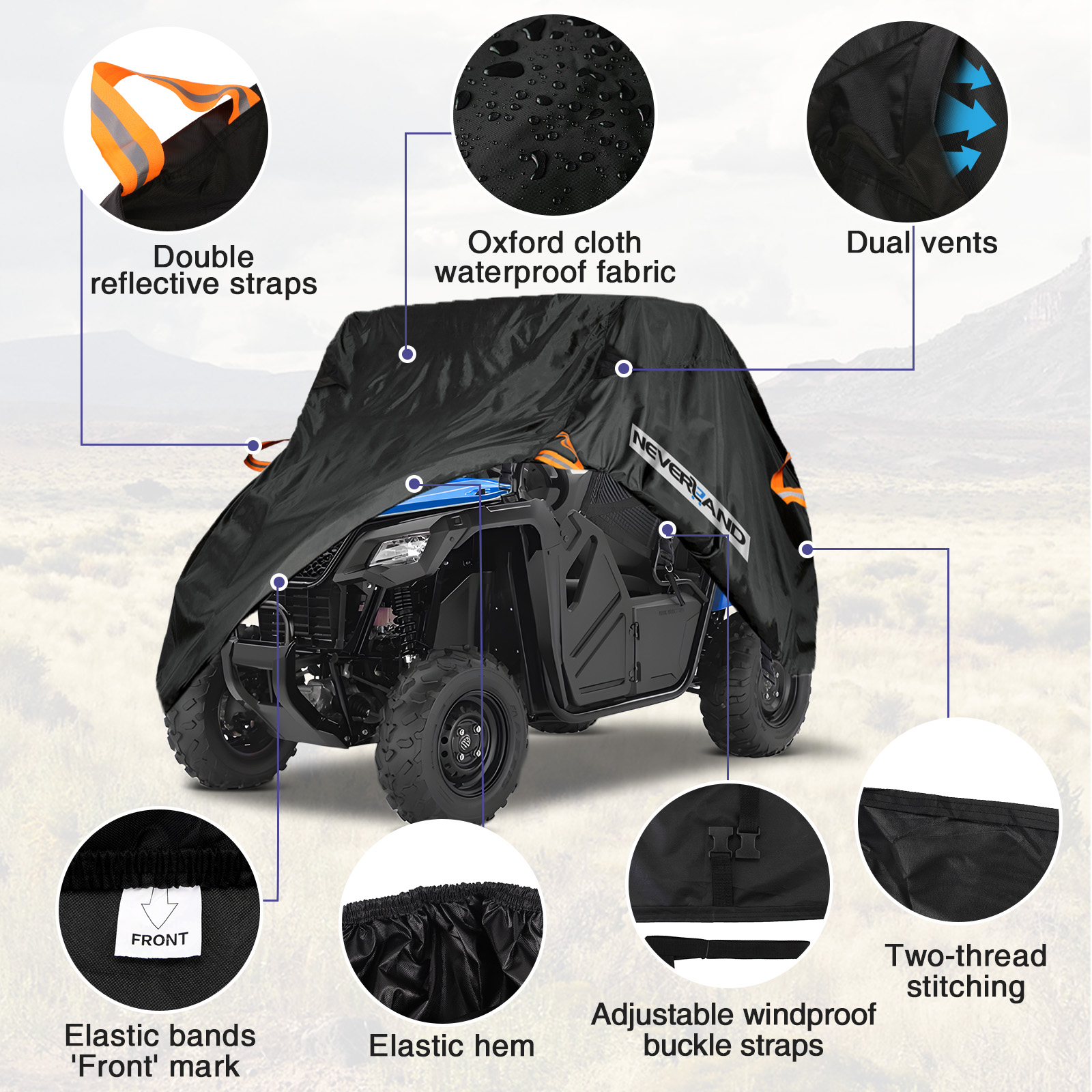 【Excellent Material】:High Quality 300D Denier Oxford cloth and Double-stitched seams, 2-3 Seats UTV cover can efficiently protect your UTV from rain, sun, dust, and bird poop, also it can protect your vehicle's surface from being scratched by sharp objects