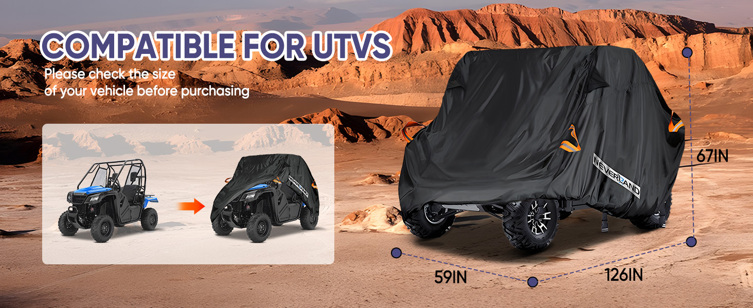 【Fitment Models】:NEVERLAND UTV cover fits for Polaris RZR Yamaha Can-Am Defender Honda Pioneer Teryx Mule / Single Row Seats UTV (2-3 Passenger), ★Please note : Only for Single Row Seat! Please check your UTV MODEL YEARS as well as the UTV Fitment Guide before you making an order! If you still have doubts , please feel free to contact us