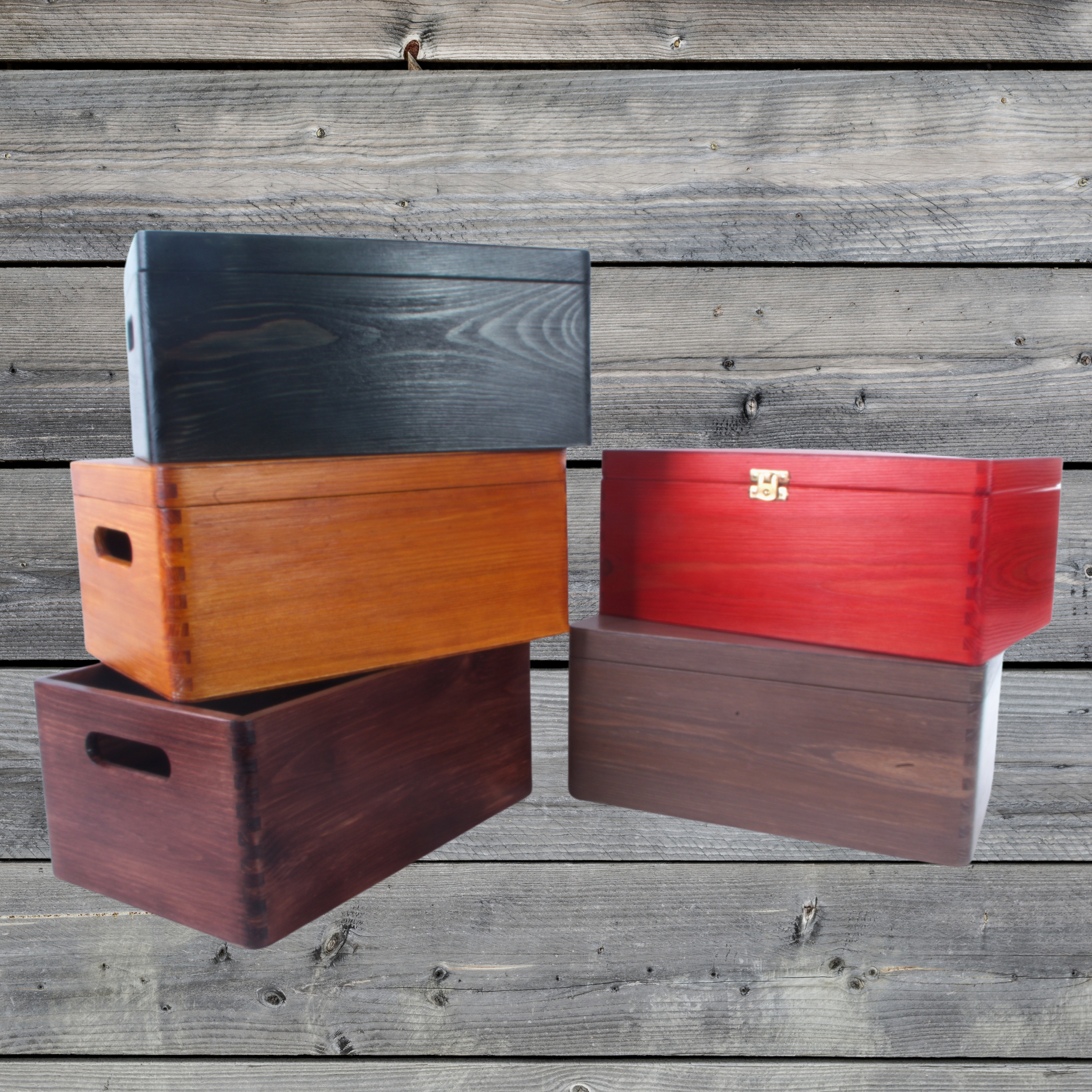 These are wooden boxes made from natural wood, so there may be grain, knots & stamps from the manufacturing processes. Crafted from high-quality, sustainable wood for long-lasting use.