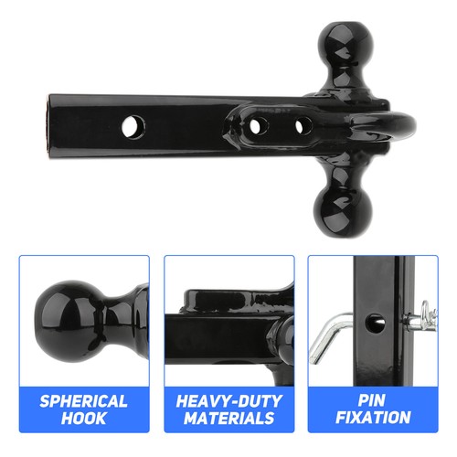 ▲ Features: MULTIPURPOSE: The 2" Three-Ball Trailer Hitch can be used for a variety of vehicles,RVs, cargo trailers, livestock trailers, farm trailers, off-road vehicles and more. the Triball Mount is suitable for 3 different hitch and trailer sizes,easy switch and install. SAFETY FEATURES: Safety is always a top priority when it es to towing,The Trailer 3-Ball Mount attached pin can firmly fix the traction hook and receiver, not easy to fall off that this hitch will last for years to e and keep you safe on the road. CORROSION RESISTANT: The 2 Inch Tri- Ball Hitch is made of high-quality steel, heavy-duty welded construction, made of black powder-coat,electroplating,dust-proof,rust-proof and corrosion-resistant for added durability.