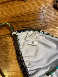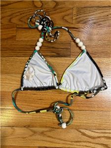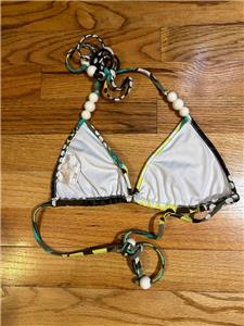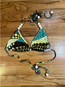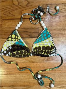 Womens Milly Cabana Brown White Aqua Yellow Dotted Triangle String Bikini Top 6 *