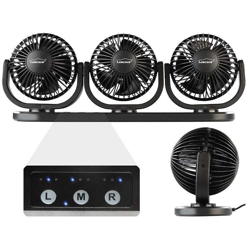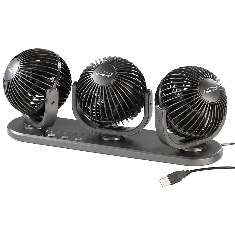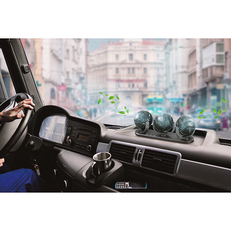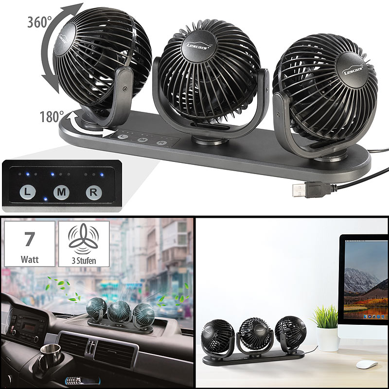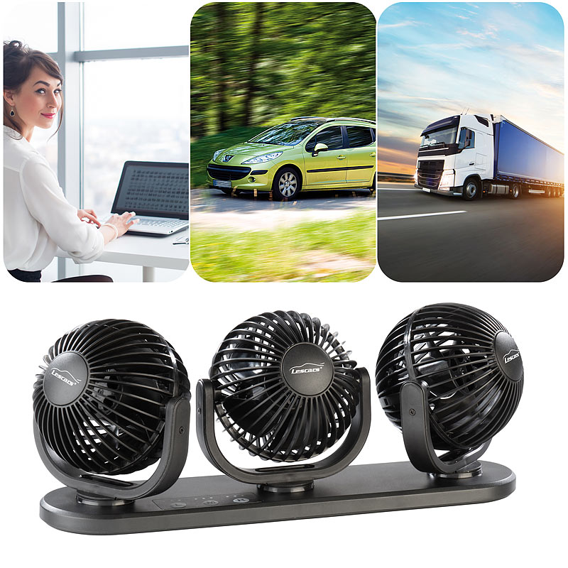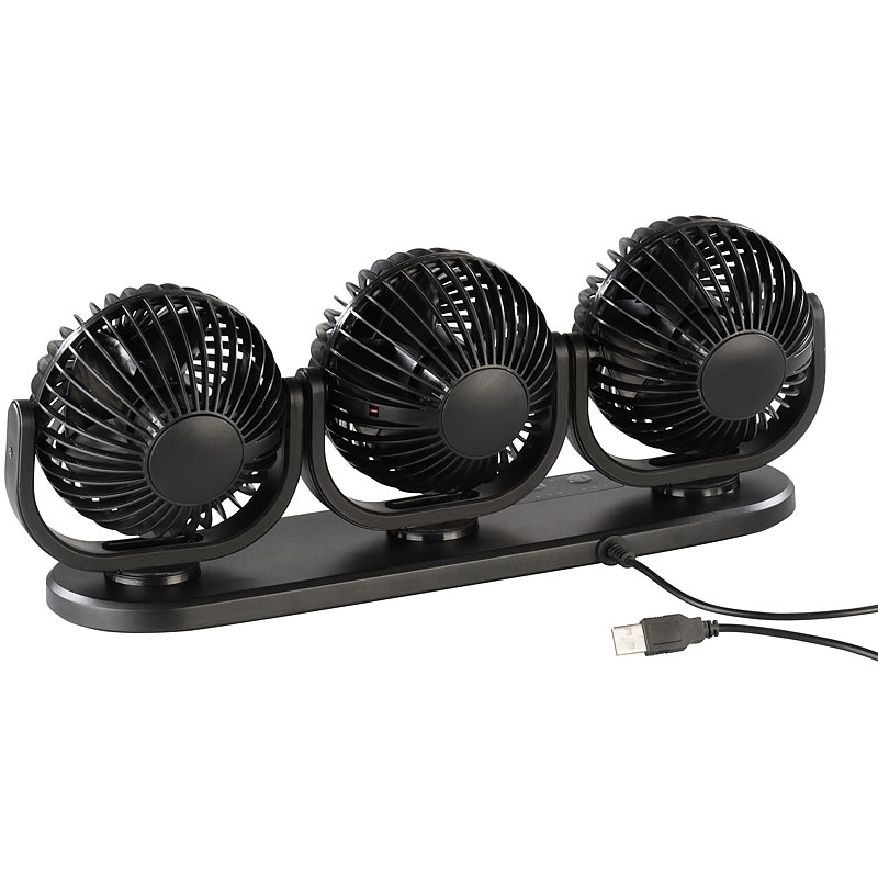 Für frische und kühle Luft in Ihrem Auto: Schließen Sie den Dreifach-Ventilator einfach an einen USB-Port Ihres Autos an. Schon genießen Sie während der Fahrt, im Stau und bei langen Pausen eine angenehme Luftbrise.