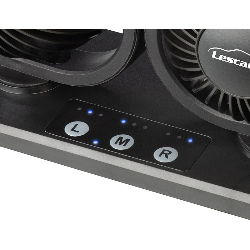 - Je 1 Knopf pro Ventilator für ein/aus und 3 Geschwindigkeitsstufen